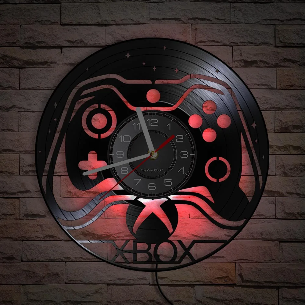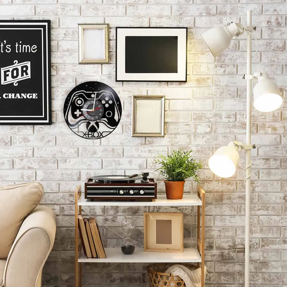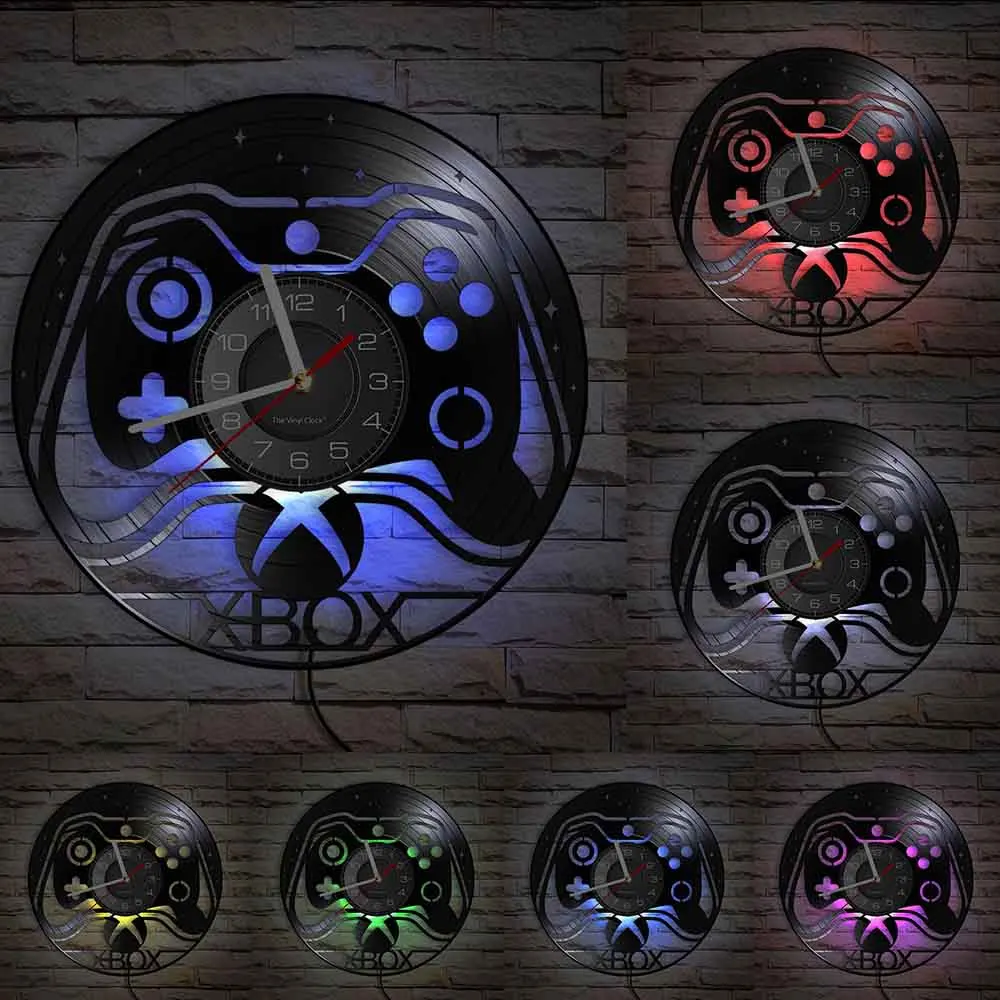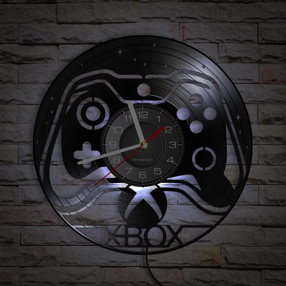 Игровой контроллер, виниловый альбом, часы с записью, винтажный игровой декор для мальчика, спальни, джойстик, виниловый диск, настенные часы
