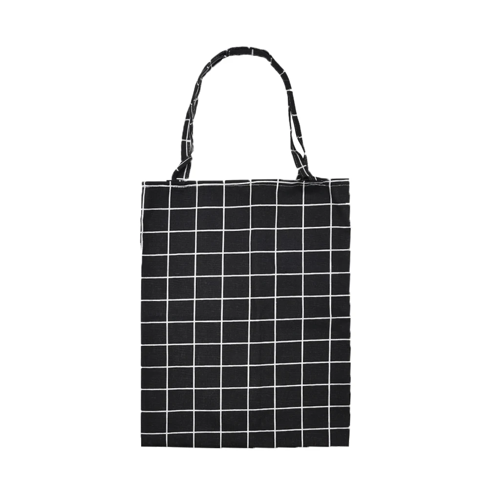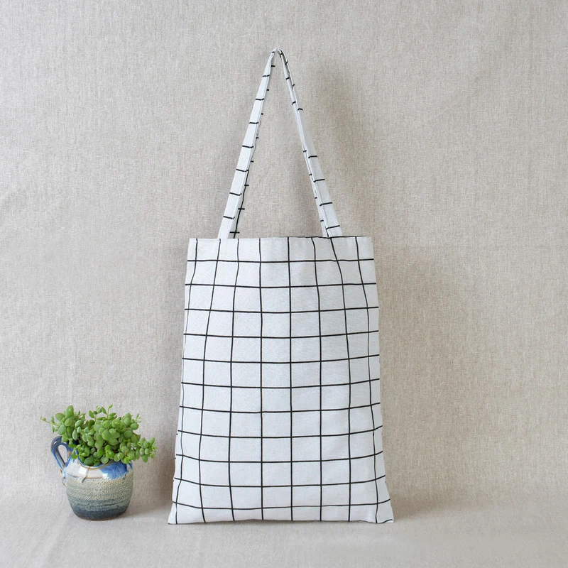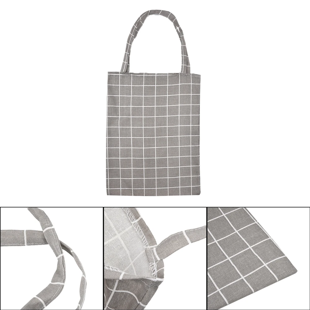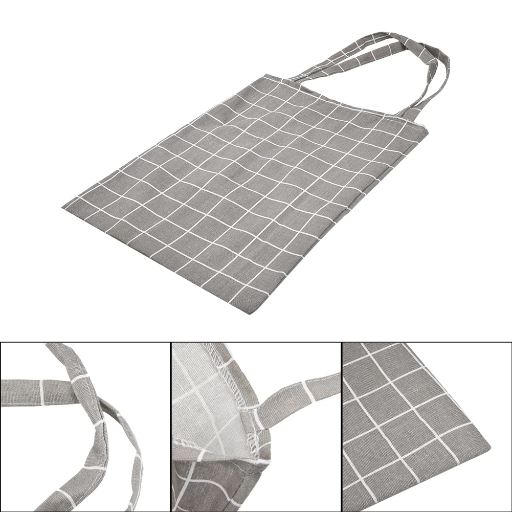 Практичная Льняная сумка через плечо, эко шоппер, клетчатая сумка без подкладки, Женская эко-сумка, многоразовые сумки для покупок