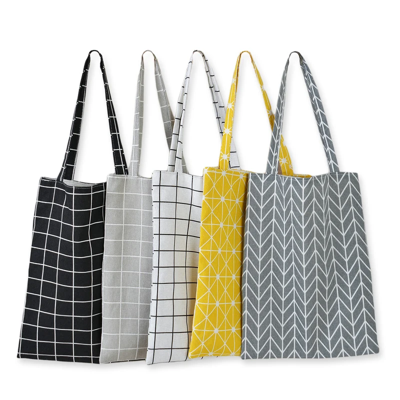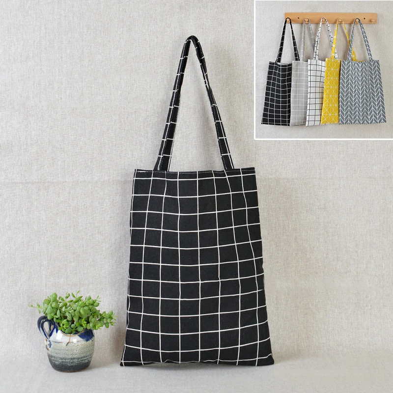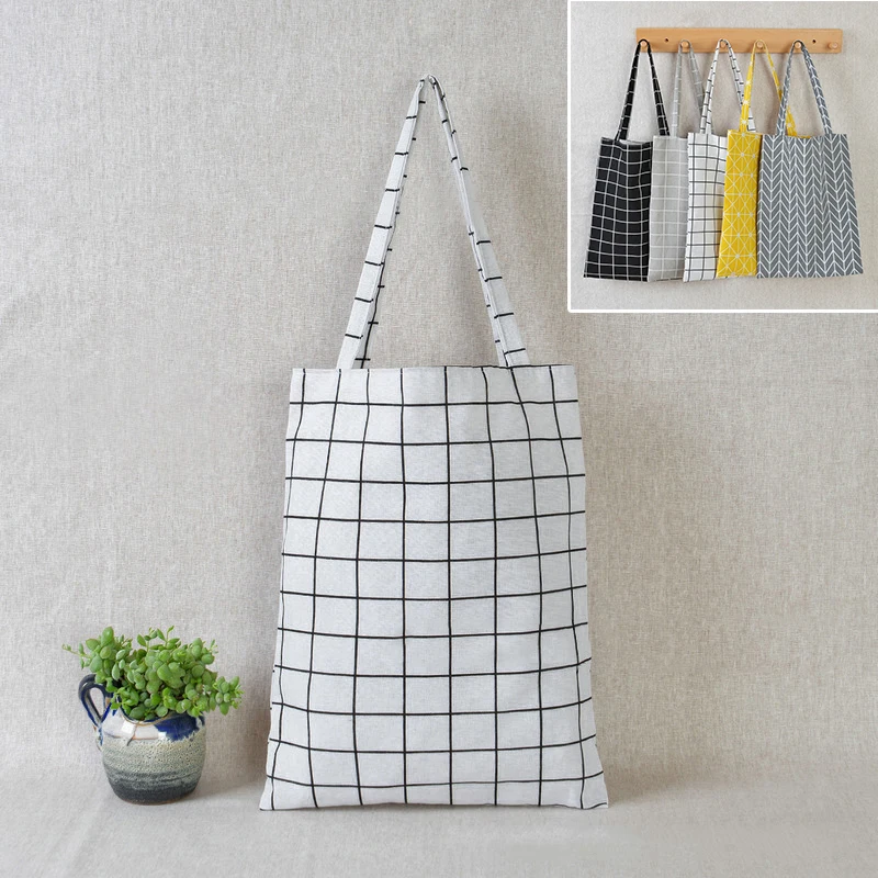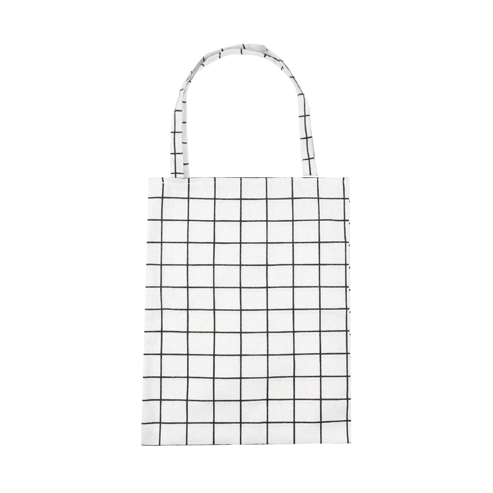 Практичная Льняная сумка через плечо, эко шоппер, клетчатая сумка без подкладки, Женская эко-сумка, многоразовые сумки для покупок