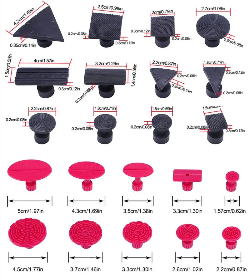 Различные вкладки для различных вмятин подъемник или Молот скольжения, работает со всеми клеевые съемники.Прочная конструкция обеспечивает идеальное расположение и превосходные адгезионные свойства.Мы рекомендуем очистить их спиртом, прежде чем использовать эти клеевые вкладки.