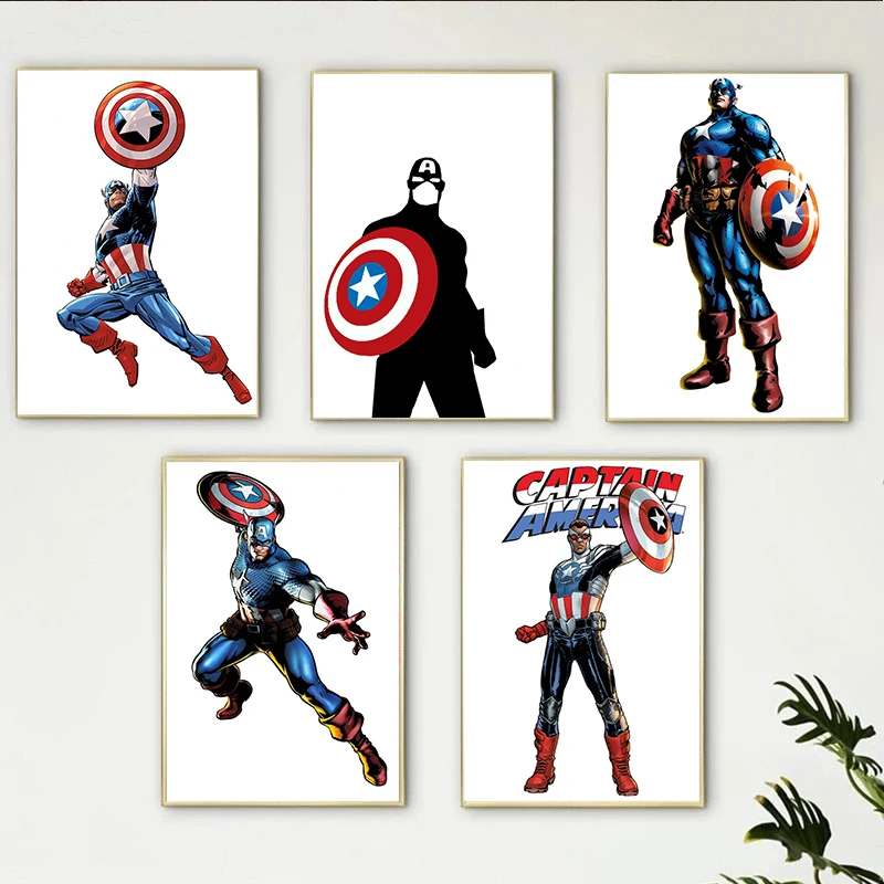Картина на холсте Мстители, анимационные комиксы, Постер Marvel, принты, семейство капитанов Америка, настенное искусство, детские подарки на день рождения