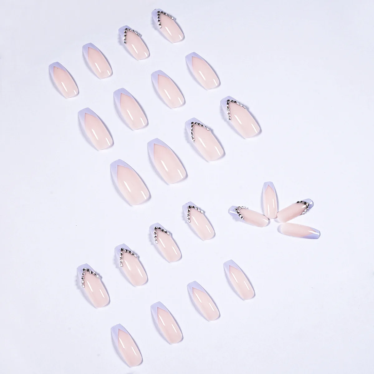 Накладные ногти, французский маникюр, длинные, светло-фиолетовые, полностью ромбовидные, полное покрытие ногтей, наклейки на 24 ногтя с клеем