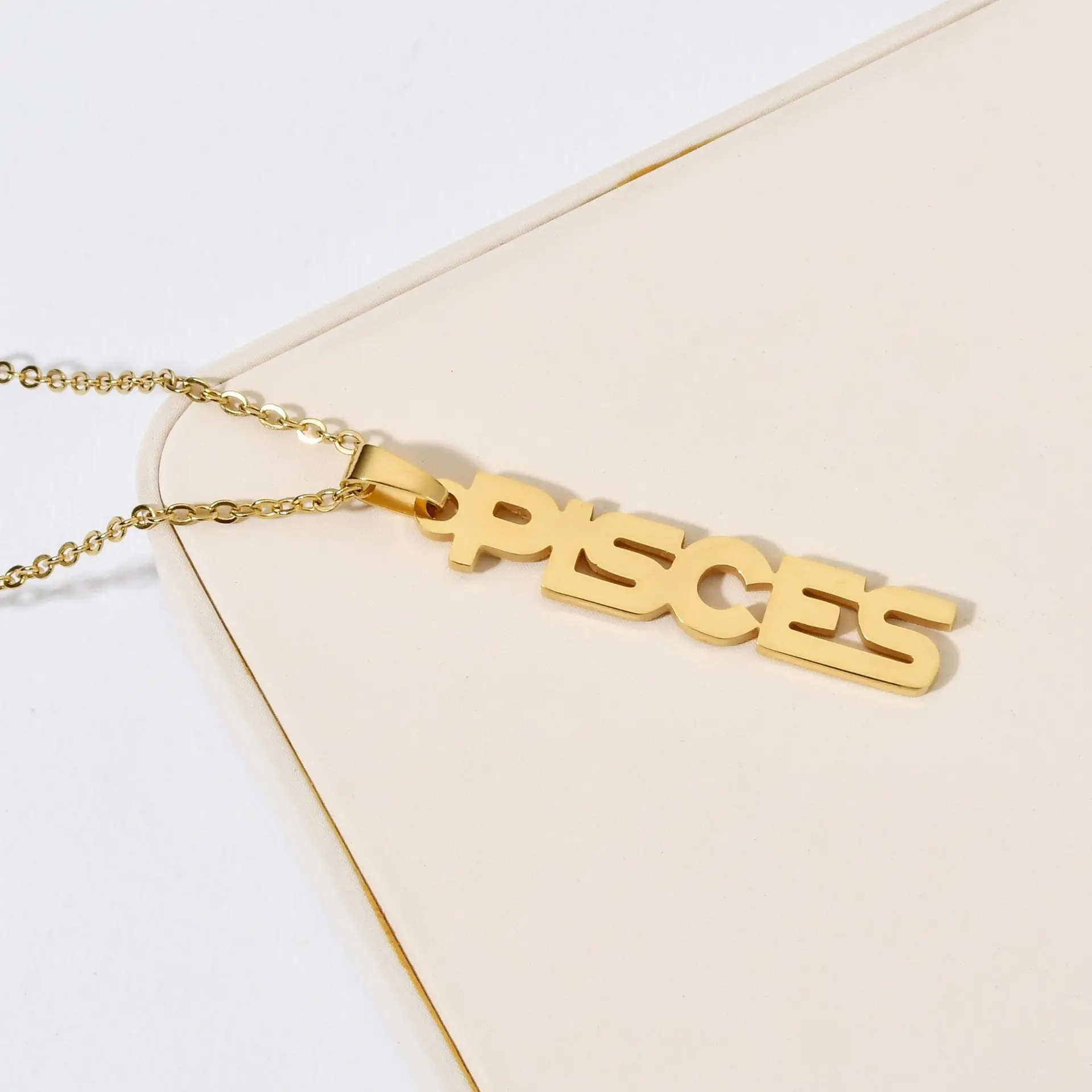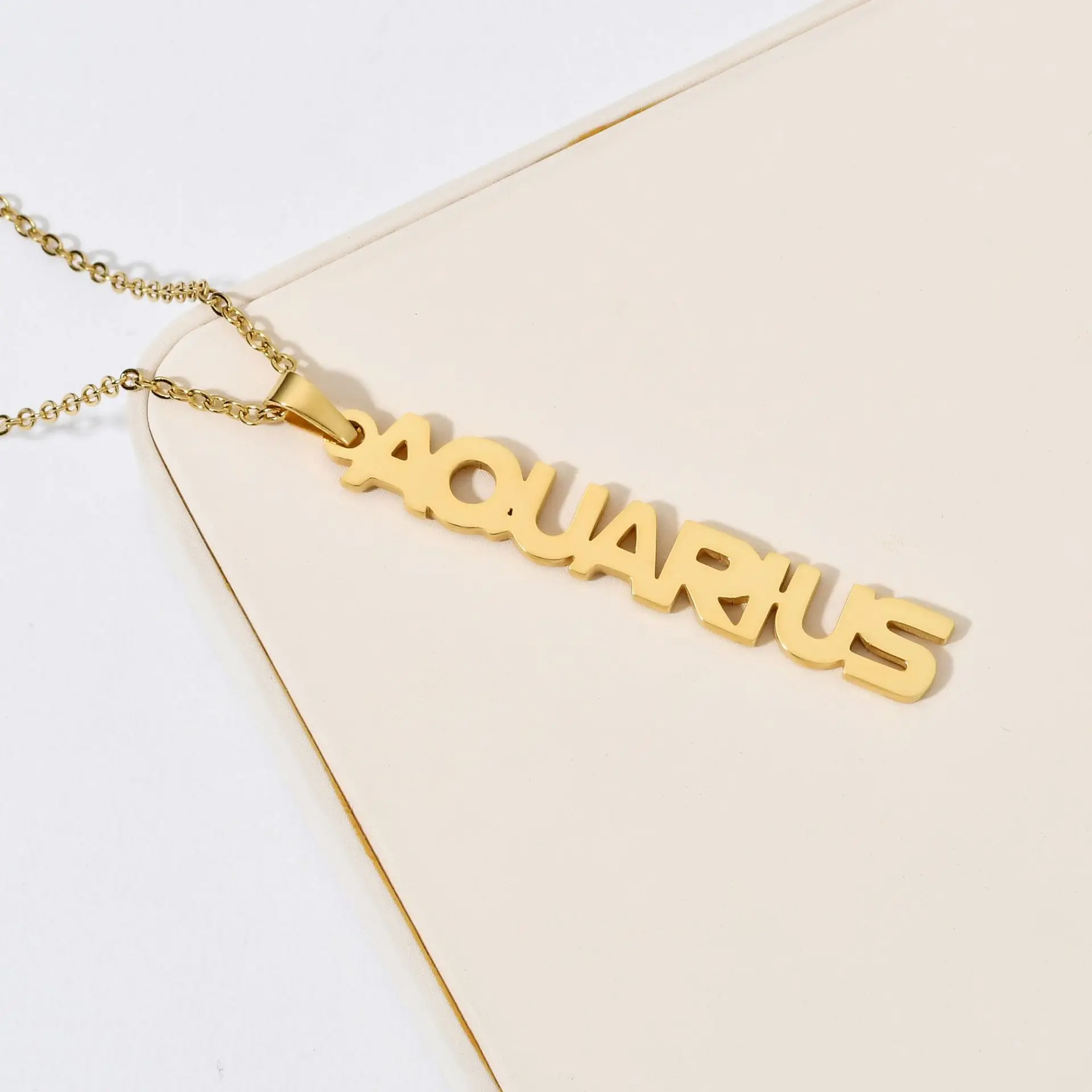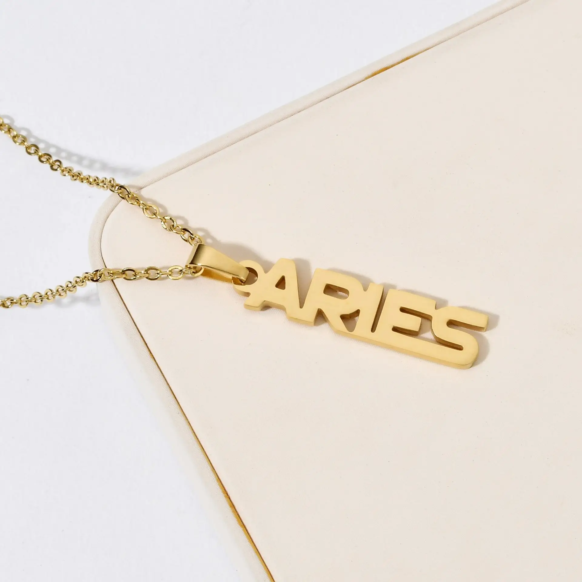Ожерелье с подвеской в виде букв из нержавеющей стали, 12 знаков зодиака