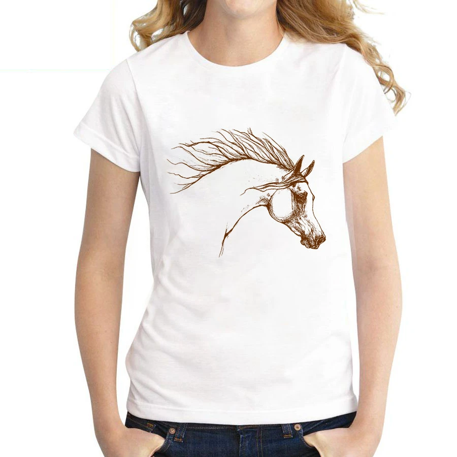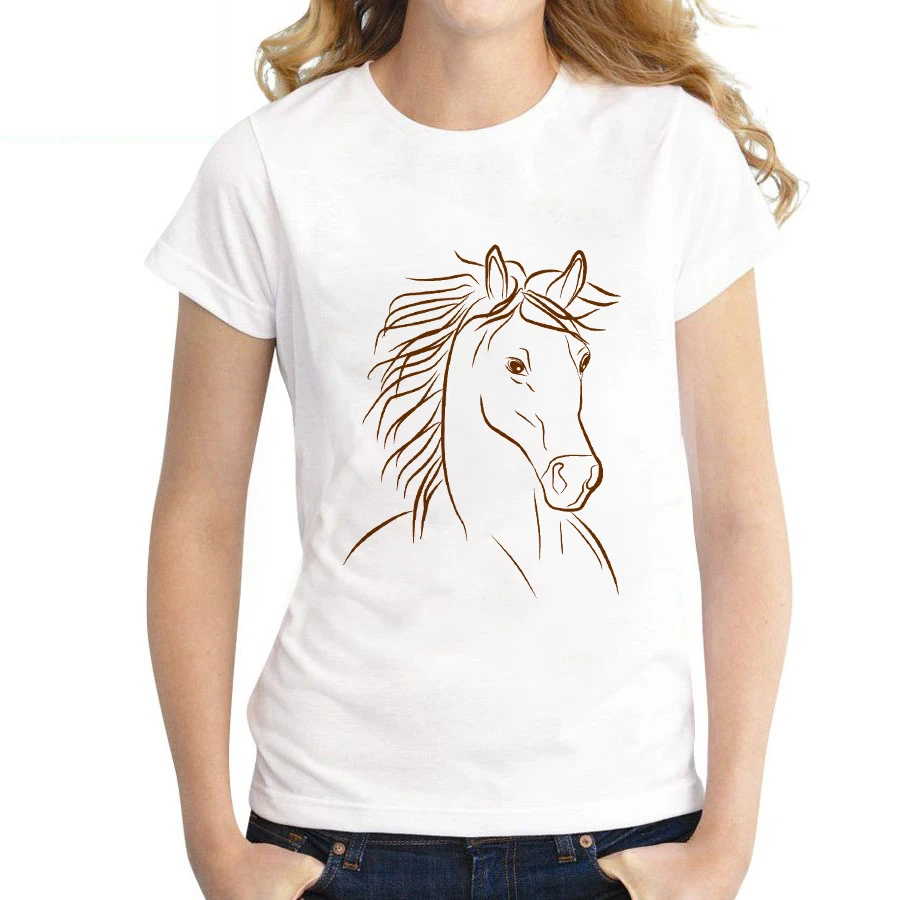 Летняя футболка 2021 забава ретро Топ Женская футболка Абстрактный Конь графическая футболка с О-образным вырезом, с коротким рукавом, для девушек, топы больших размеров
