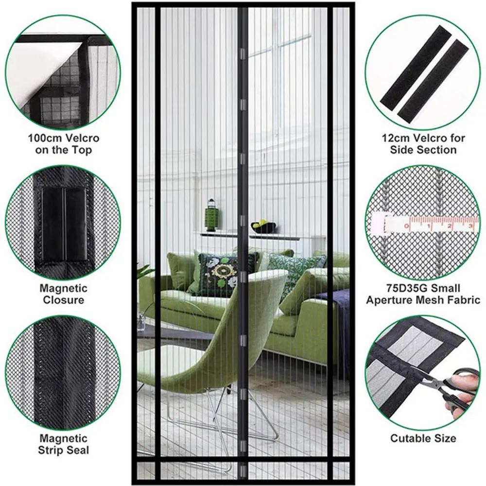 Магнитная москитная сетка для дверей, противомоскитная сетка, насекомые, занавески для насекомых, автоматическая закрывающая дверь для кухни, полосатые Дверные Шторы, сетка