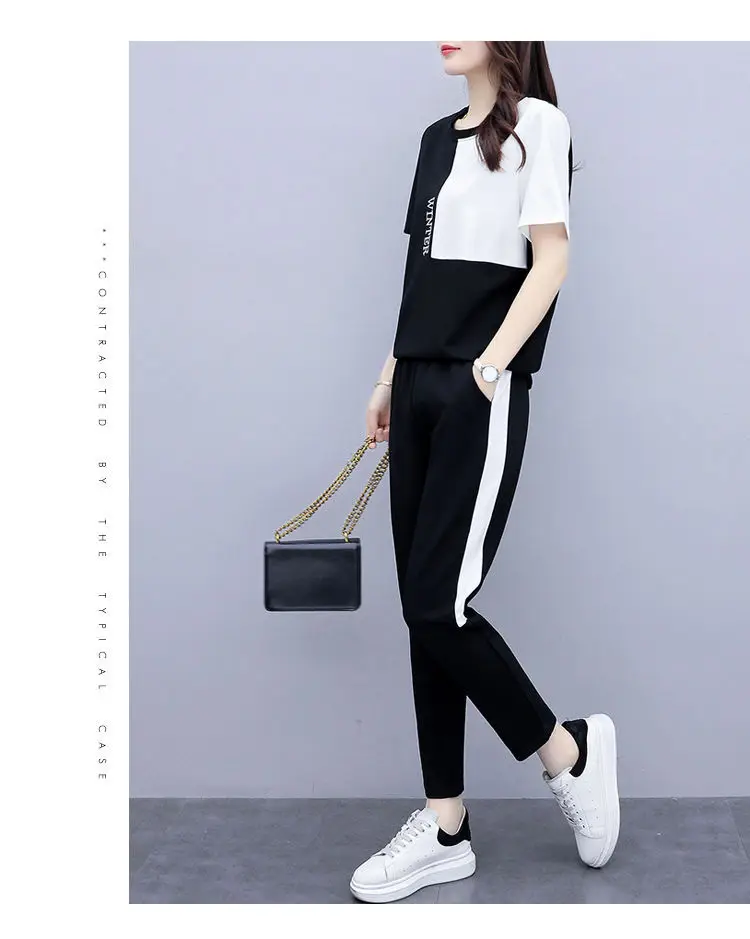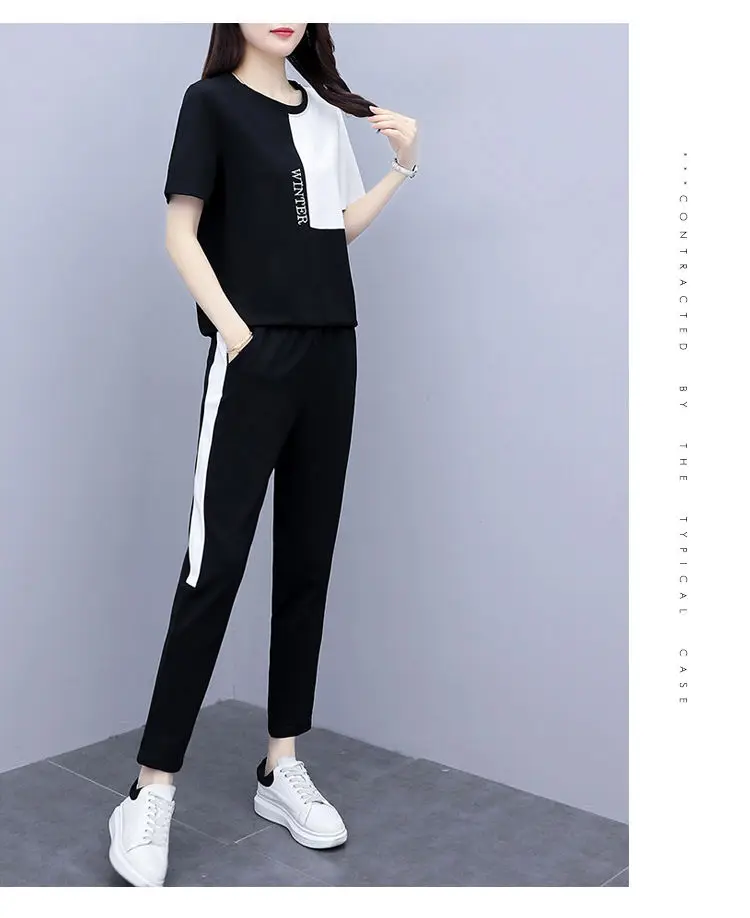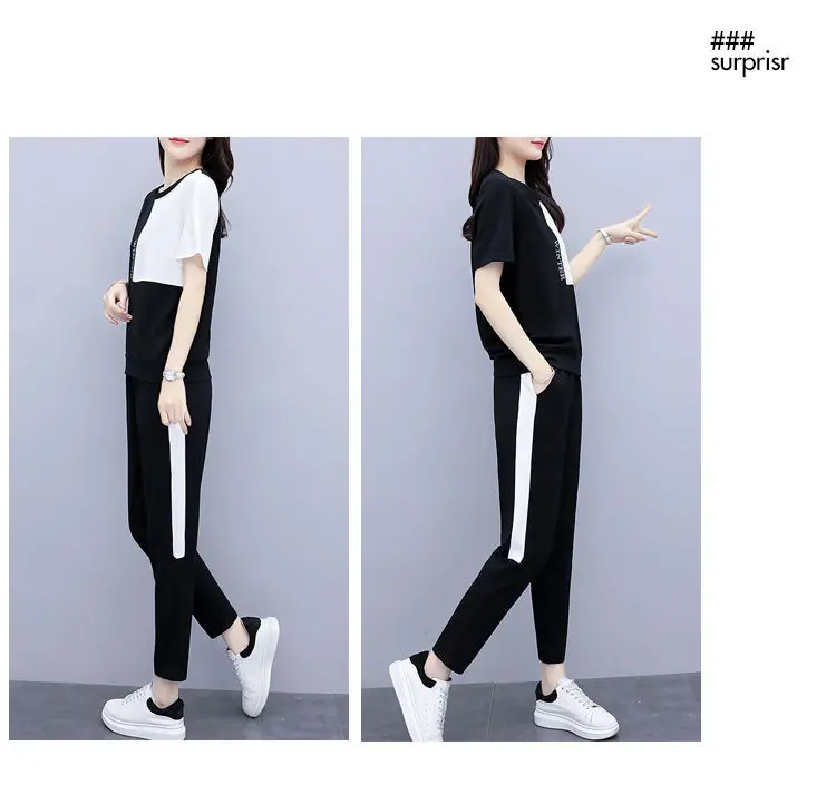 Женский спортивный костюм, комплект из двух предметов, летняя одежда, цветной пуловер с буквенным принтом, топ и длинные штаны, костюм, повседневные женские комплекты, наряд 100% новый товар высокого качества. Нет следов удовольствия Стиль: Модный, удобный Цвет: как на фотографии