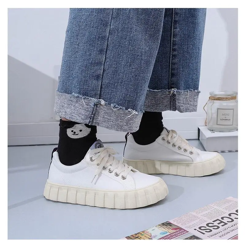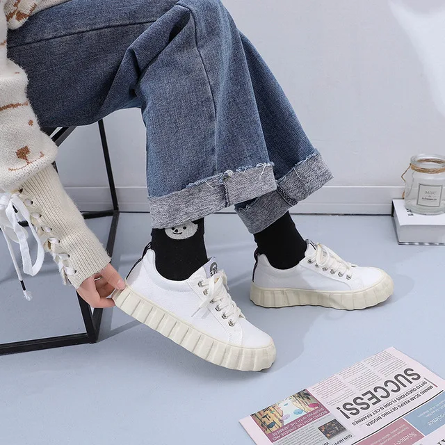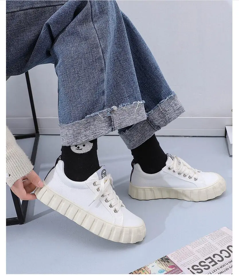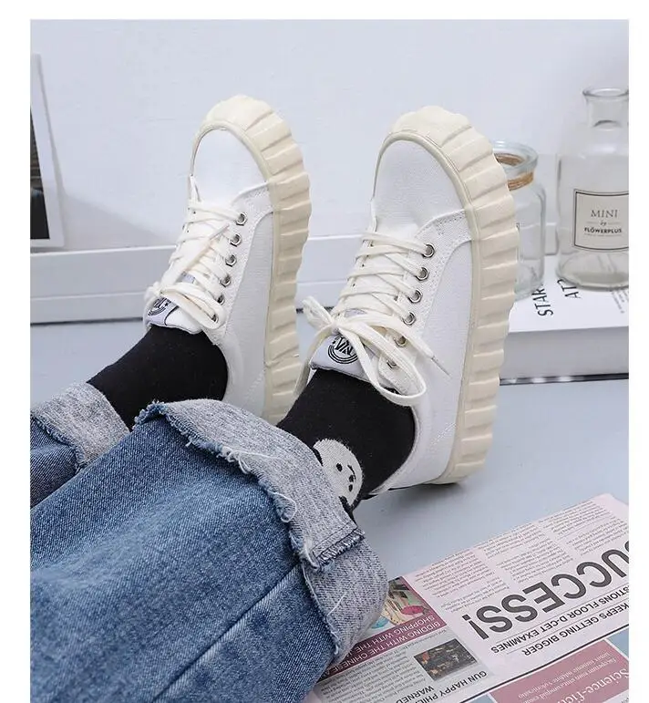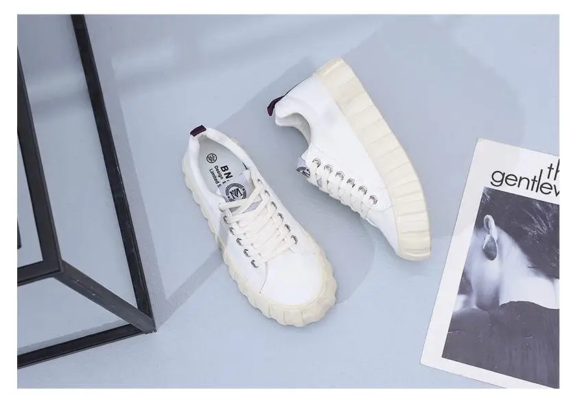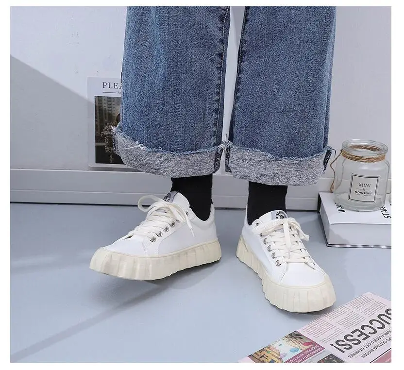 Новинка; Некрасивая парусиновая обувь; Женская обувь на толстой платформе; Корейская Студенческая универсальная Белая обувь; Женская обувь; Обувь на платформе