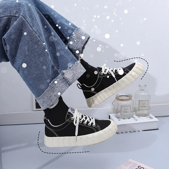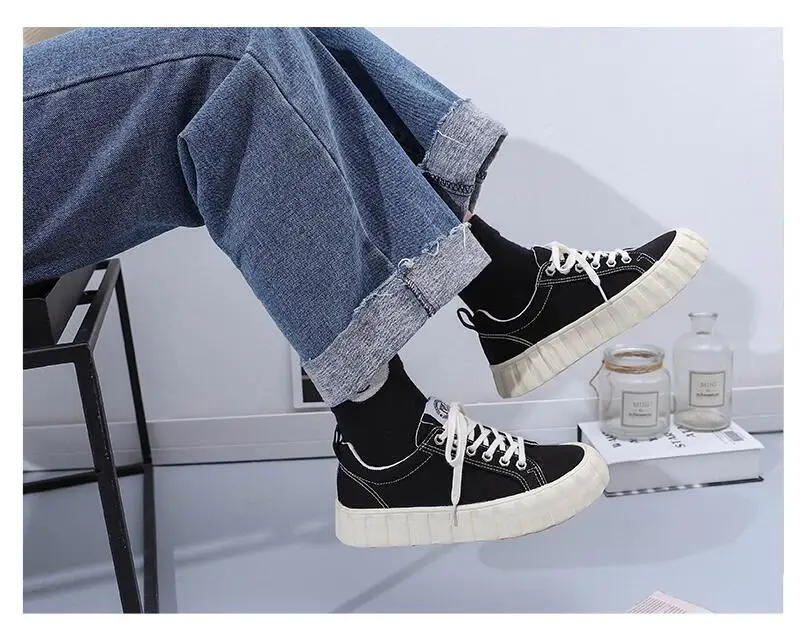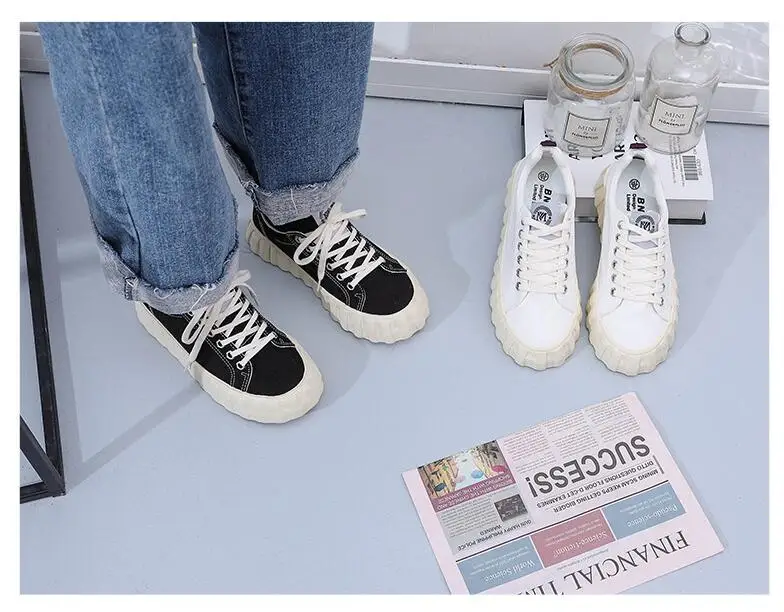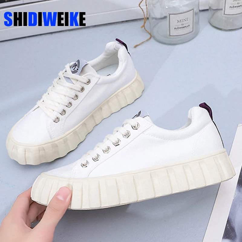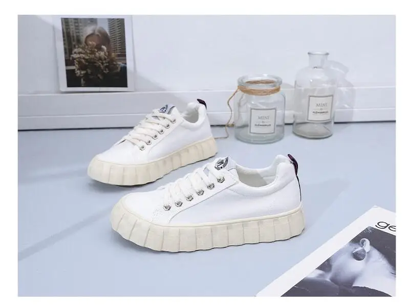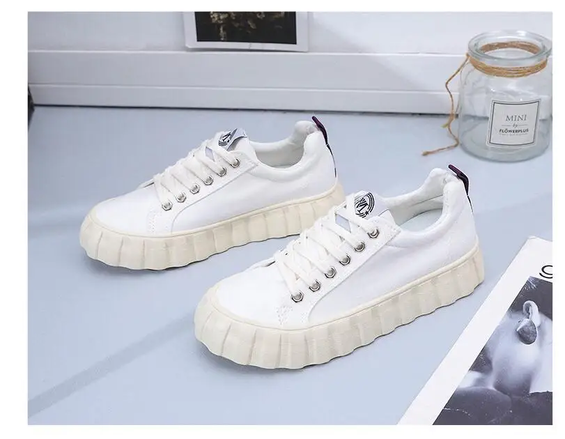 Новинка; Некрасивая парусиновая обувь; Женская обувь на толстой платформе; Корейская Студенческая универсальная Белая обувь; Женская обувь; Обувь на платформе