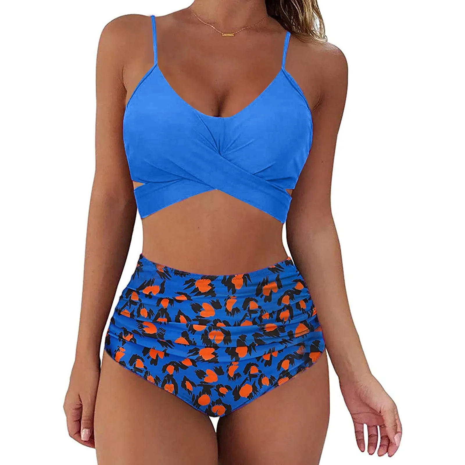 Летний женский комплект бикини с цветочным рисунком, купальник с высокой талией, укороченный топ, Купальники пуш-ап, танкини, купальный костюм с лямкой через шею, сексуальные бикини, размера плюс