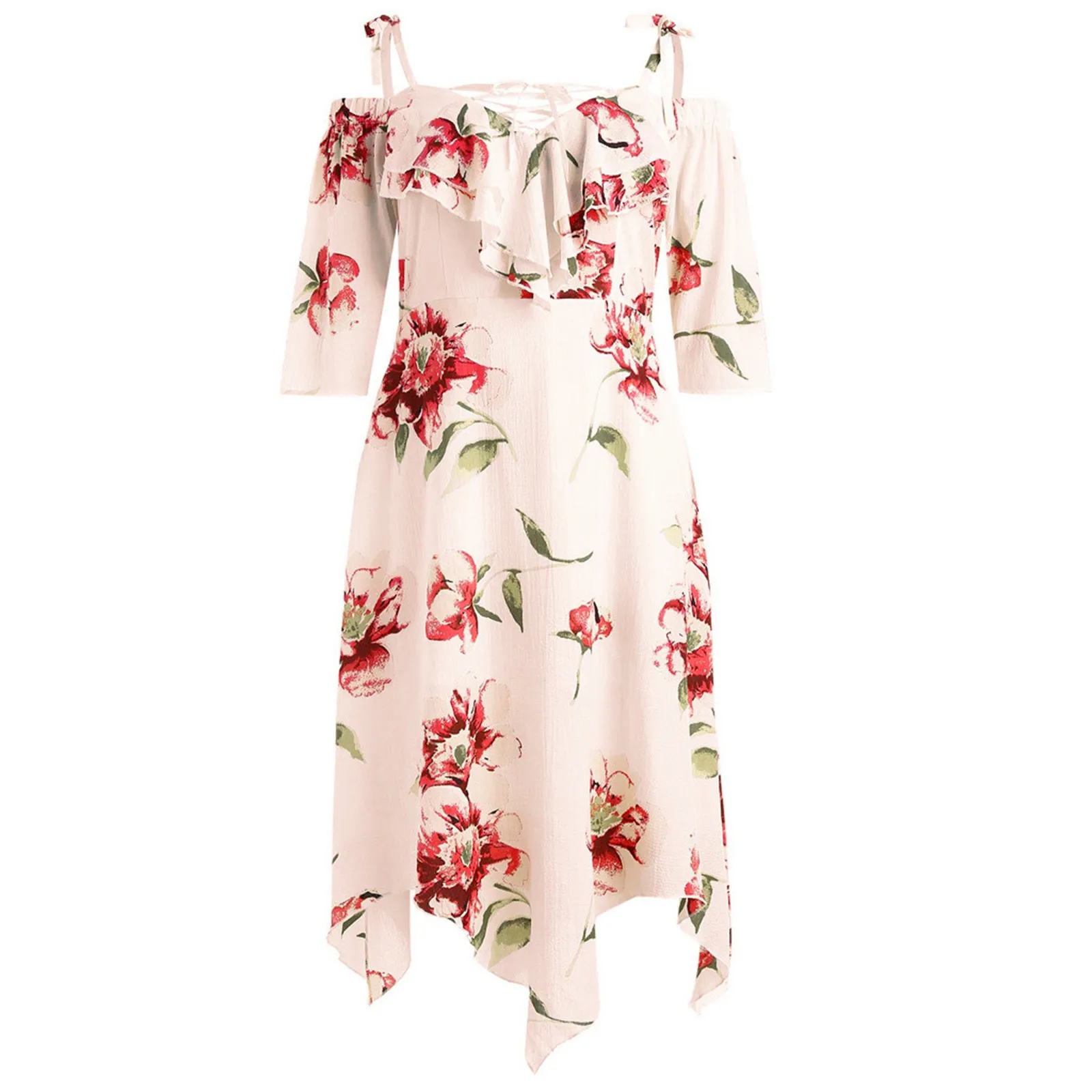 Платье женское с открытыми плечами, пикантный пляжный Макси Сарафан с запахом, с цветочным принтом, в стиле бохо, с оборками и коротким рукавом, 5XL, на лето