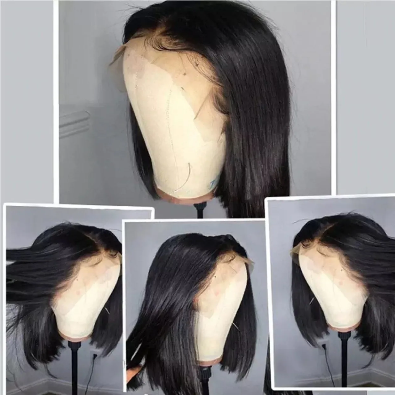 14-дюймовый короткий Боб шелковистый прямой бесклеевой кружевной пе...