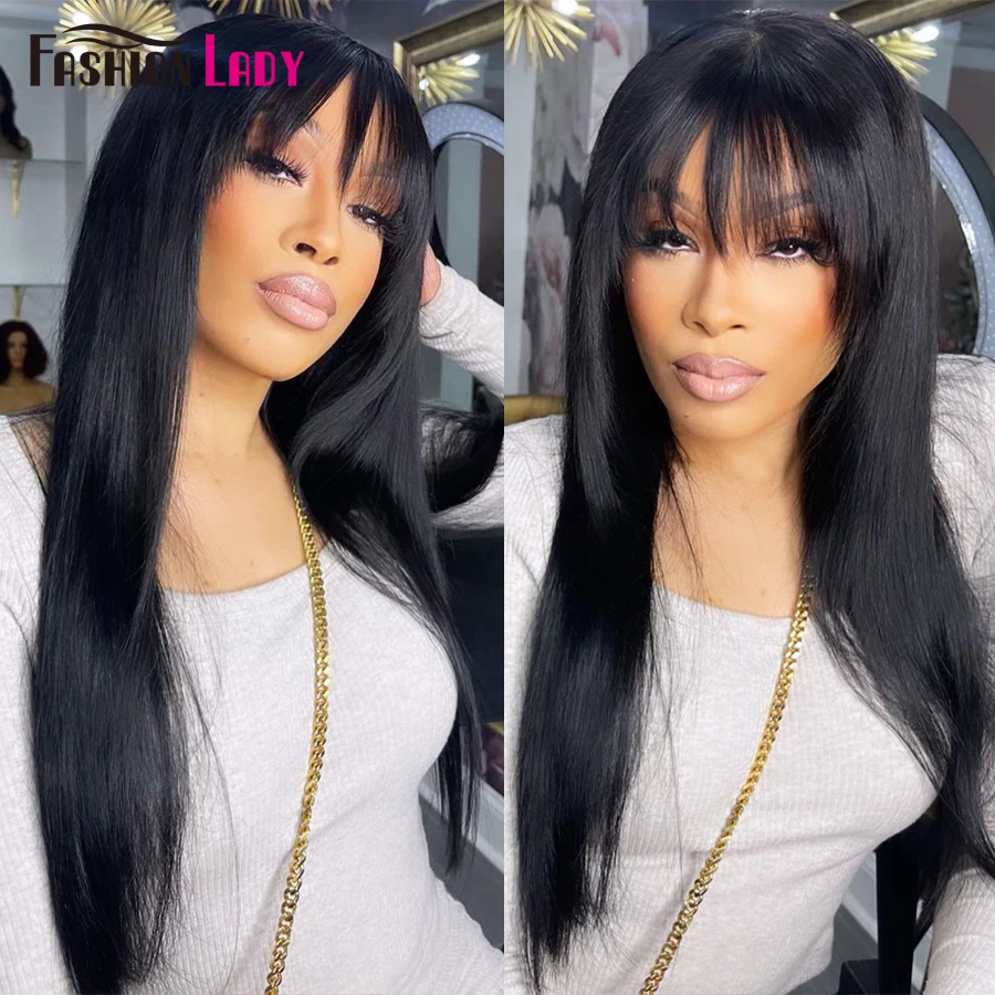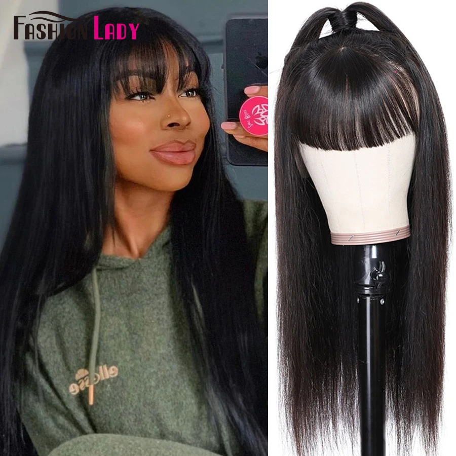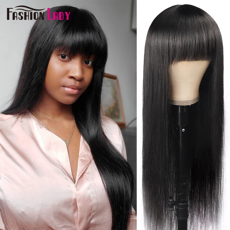 Парики из человеческих волос с челкой, бразильские прямые парики из человеческих волос с челкой, Модные женские парики Remy полностью машинной работы для женщин