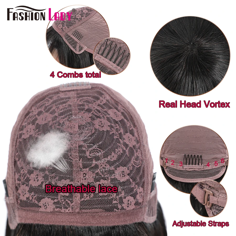 Бразильский прямой парик с бахромой человеческие волосы с регулируемым ремешком