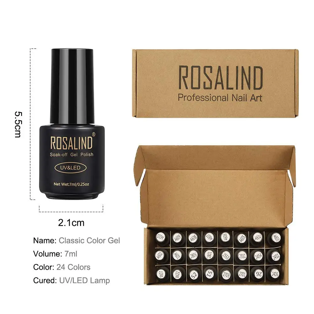 Название бренда: ROSALINDМатериалы: УФ-изгибаемая смолаОбъем: 7 мл/0,25 ozВес нетто: 25 гСертификация: MSDS, SGSИнструменты для отверждения: УФ-лампа, светодиодный светильник, УФ/светодиодный CCFL лампа Качество-наш первый приоритет.Гели остаются блестящими до 30 дней.Самые популярные цвета на выбор.Подходит для всех случаев. Три шага для маникюра самостоятельно:1.-форма поверхности ногтей, очистить кутикулы, для полировки ногтей поверхности и очистить пыль.2.-Нанесите базовый слой ROSALIND (не забудьте запечатать край ногтя).Вылечите светодиодный светильник в течение 60 секунд или УФ-лампа в течение 2 минут.3.-нанесите первый слой цвета ROSALIND.Вылечите светодиодный светильник в течение 60 секунд или УФ-лампа в течение 2 минут.4. Нанесите больше слоя цветного пальто, если цвет недостаточно яркий.5.-нанесите верхнее пальто ROSALIND.Вылечите светодиодный светильник в течение 60 секунд или УФ-лампа в течение 2 минут.6.-протрите липкий остаток на ногтях очищающим средством. Два шага для удаления:1.-Замочите ногти в акриловое средство для удаления около 5 минут.2.-аккуратно разорвите весь кусок эмали для ногтей на каждый ноготь. Напоминание:1.-Вес нетто 7 мл. Но емкость бутылки составляет более 7 мл,Гель не будет полностью заполнен в бутылке!2.-Держите плотно закрытыми, держите подальше от солнечного света, держите в недоступном для детей месте.