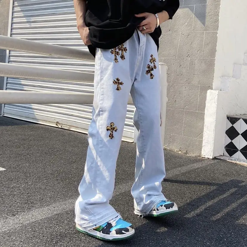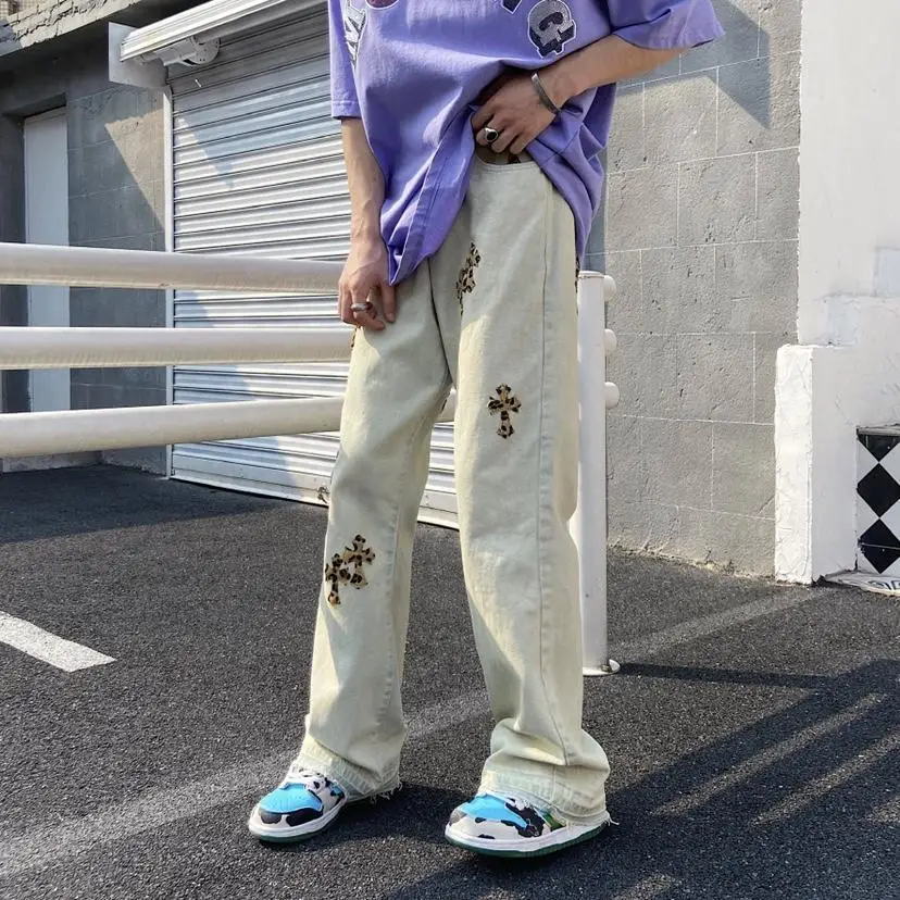 Мужские мешковатые джинсы с вышивкой, свободные брюки в уличном стиле, мужские джинсы большого размера в стиле хип-хоп, женские и мужские джинсы большого размера, 2021