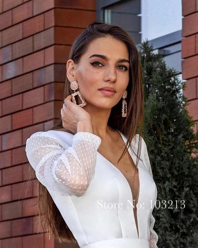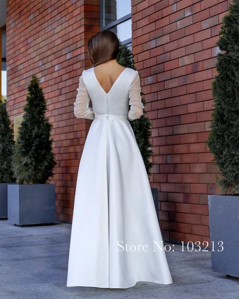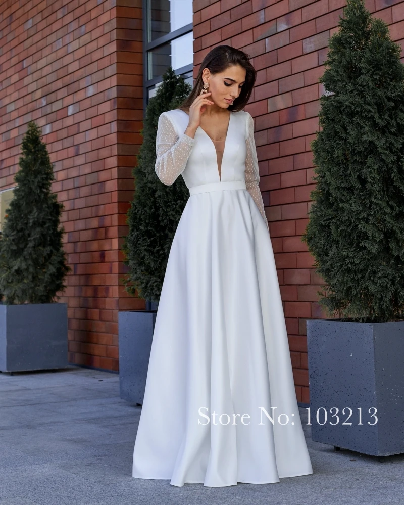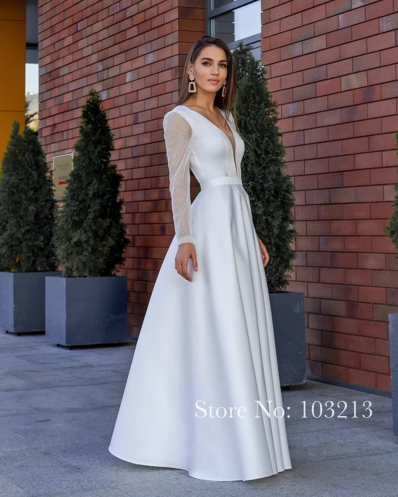2021 популярная одежда с длинным рукавом свадебные платья с v-образным вырезом атласная этаж Длина пляжные сандали, свадебные платья