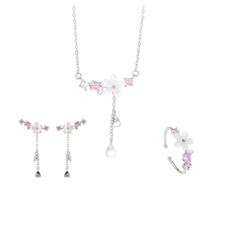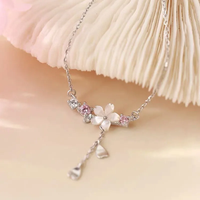 925 стерлингового серебра кисточкой в виде ракушки, цветущая вишня, ожерелье с подвеской в виде серьги-кольца для женщин вечерние комплект ювелирных изделий Pendientes A020