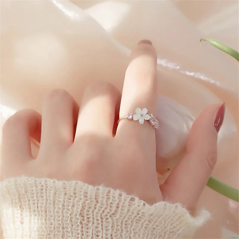 925 стерлингового серебра вишня кольцо с цветками в Корейском стиле...