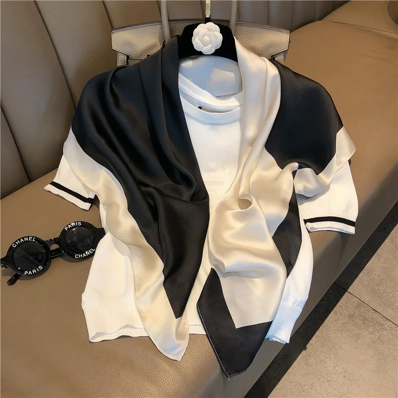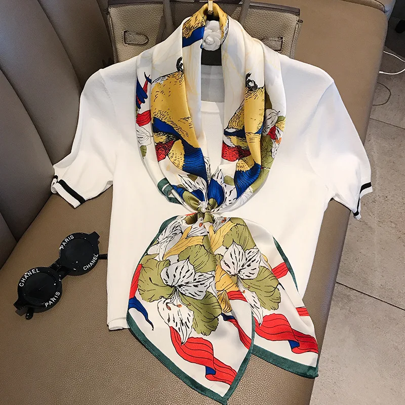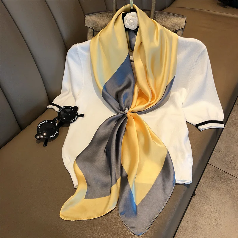 Роскошный модный Шелковый квадратный шарф для женщин 90*90 см шейный бандаж для волос дизайнерский мягкий шейный платок хиджаб головной платок женский платок