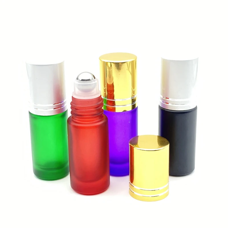1510 шт Портативный эфирное масло флакон духов многоразового матовый цветной 5 мл толстое Стекло рулон с шариком-роллером, золотистый, серебристый, Кепки