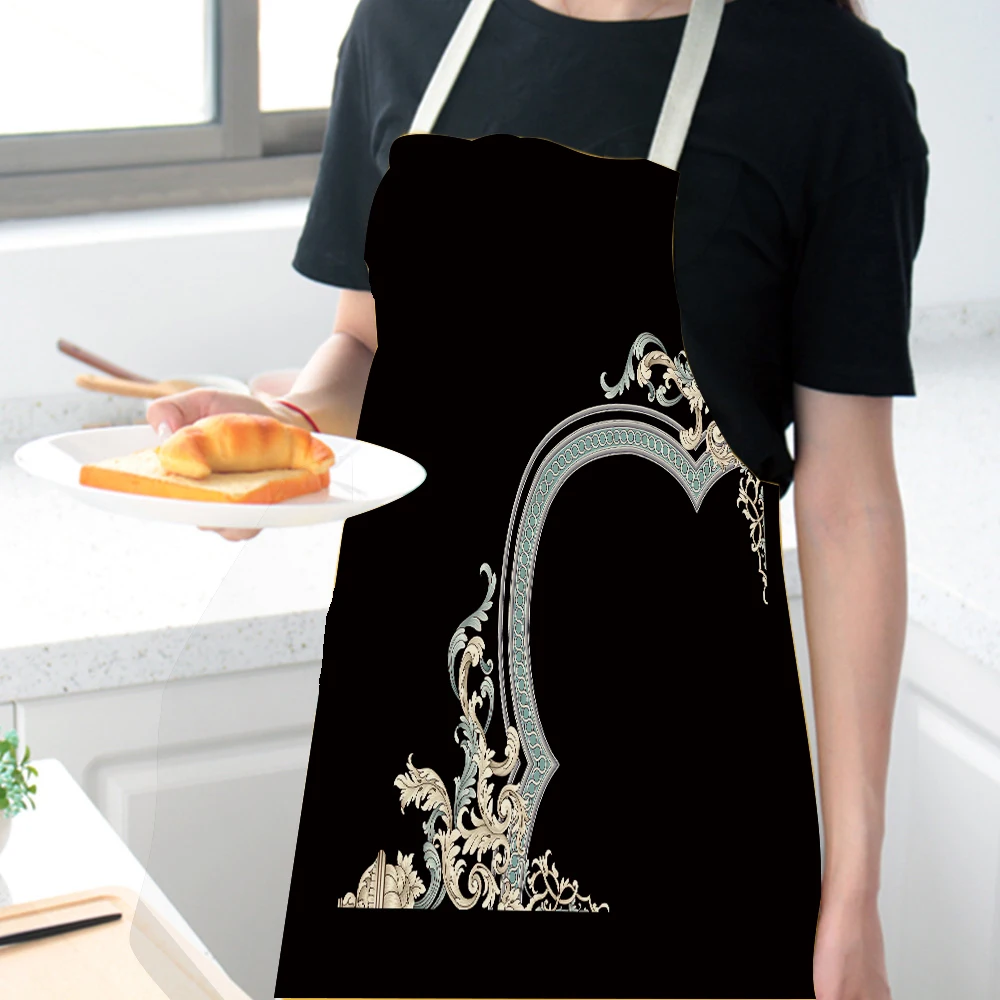 Золотые буквы алфавита Кухонный Фартук с узором для женщин, хлопков...