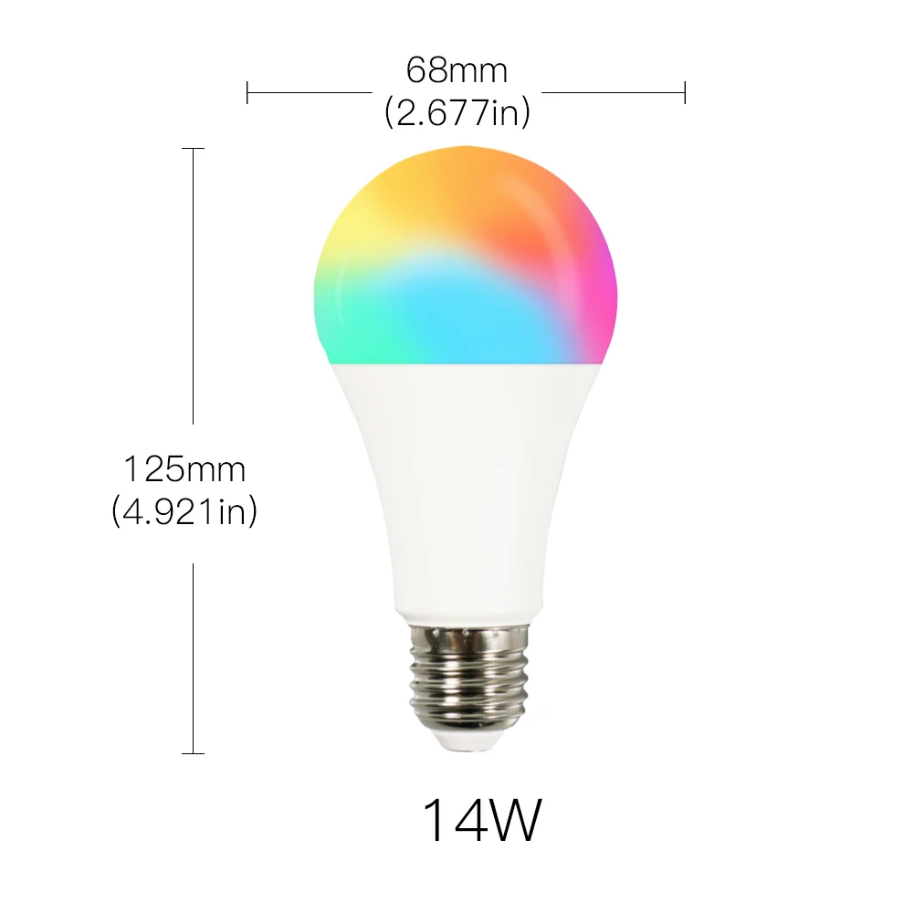 WiFi умный светодиодный светильник, лампа с регулируемой яркостью 14 Вт, RGB C + W, меняющий цвет 2900K-6000K, теплый белый на день светильник, smart Life Tuya App музыкальный ритм пульт дистанционного управления работает с Alexa Google Home E27 220-240 В Изготовитель: Moes Характеристики просукта: