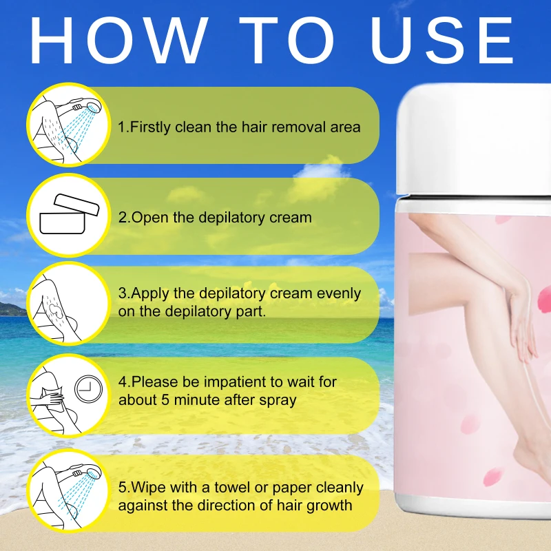 Предложение:1. Место удаления волос не наносит горячую воду и мыло или мыть, не просто используя пот или дезодорант в течение 24 часов после эпиляции.2. Если не случайно нанести на депиляционный мусс, немедленно промыть водой.3. Нос, уши, грудь, интимные части. Травмы и воспаления кожи не подходят, если они применяют.