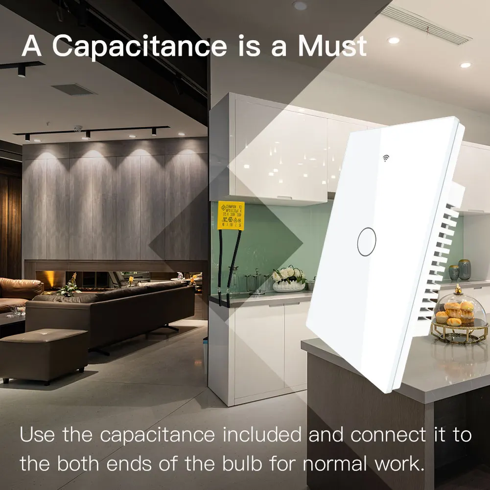 Обеспечьте гораздо больше удобства и обновлений для вашего умного образа жизни с ценой без изменений, как раньше. Особенности продукта: 1. Не требуется нейтральный провод; Легко устанавливается без переподключения имеющегося провода с помощью одножильного провода; уникальная панель из закаленного стекла подходит для различных видов стилей декора и стеклянной панели с защитой от царапин придает лучший вид, чтобы сочетаться с любым дизайном стены. (Внимание: Емкость является необходимой для нормальной работы, которая включена в посылка.)