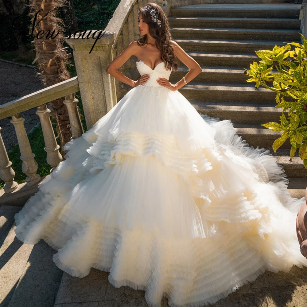Свадебные платья принцессы с длинным шлейфом, свадебные платья, индивидуальный пошив 2021, официальное женское платье невесты с бисером и аппликацией для невесты