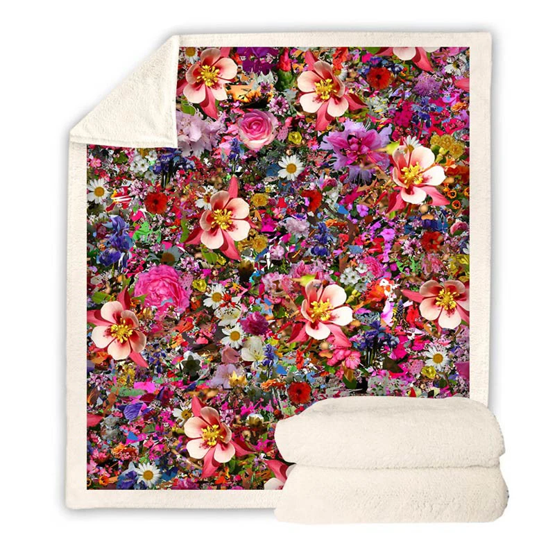 Плюшевое одеяло для взрослых, модное одеяло с цветочным рисунком, повседневное флисовое покрывало для дивана, дома, офиса, кровати