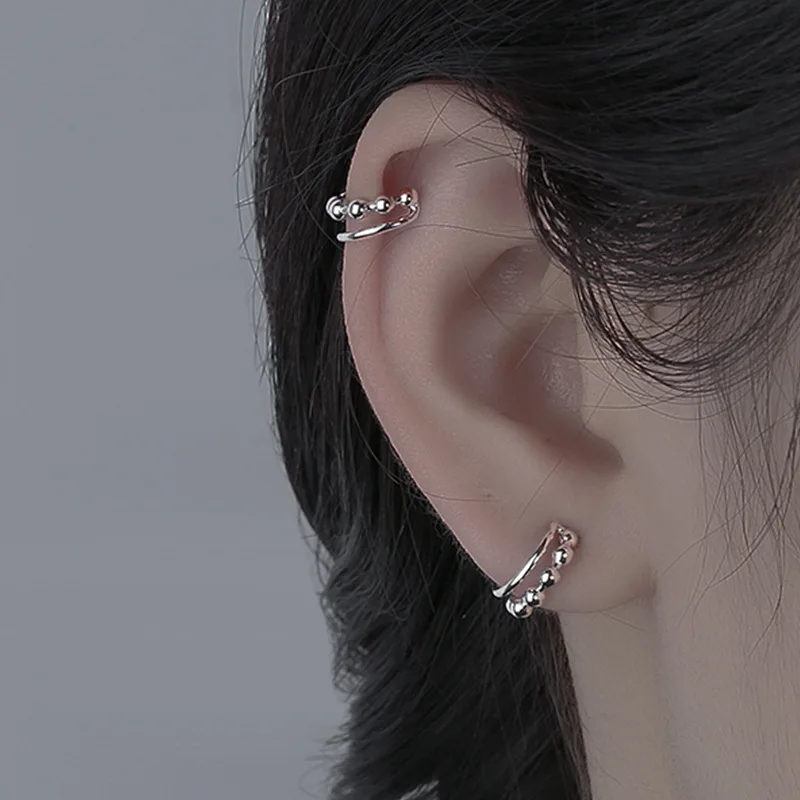 Серьги-каффы KISSLOVE, маленькие круглые, с бусинами, двухуровневые, в горошек, для девушек и женщин