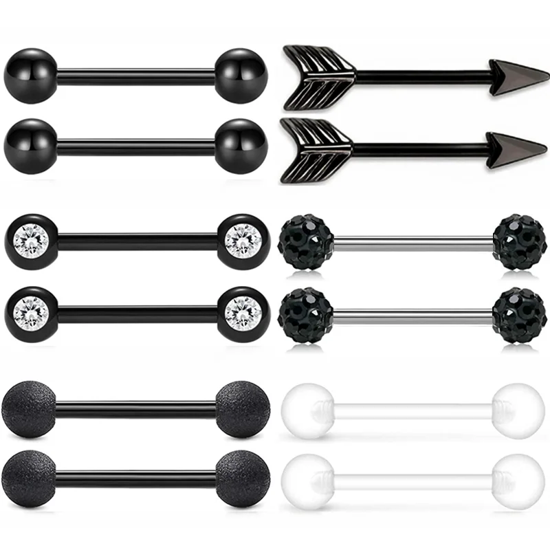Стрела из нержавеющей стали ниппель набор для пирсинга 16G с украшением в виде кристаллов штанга для языка оптом Nipplr пирсинг Бар Лот сексуальное Ювелирное Украшение для пирсинга соска