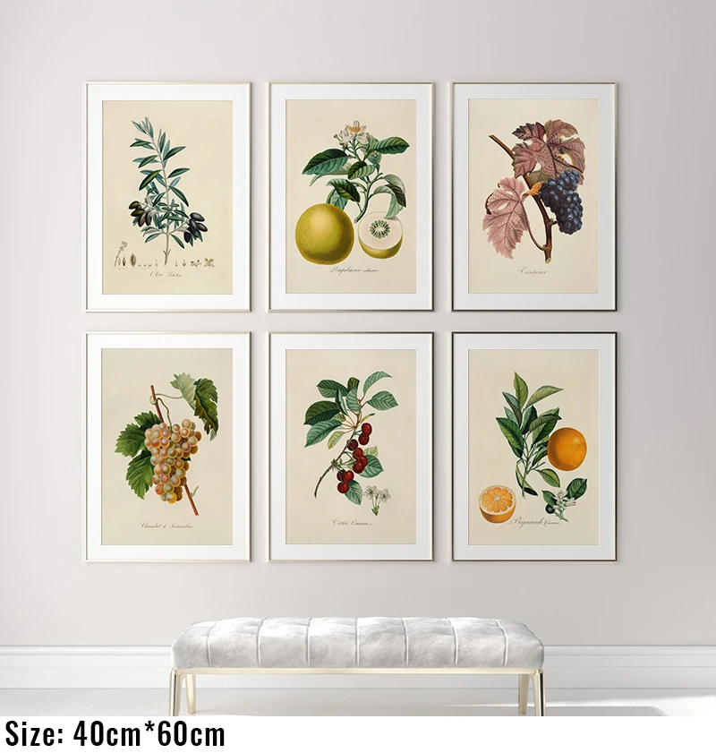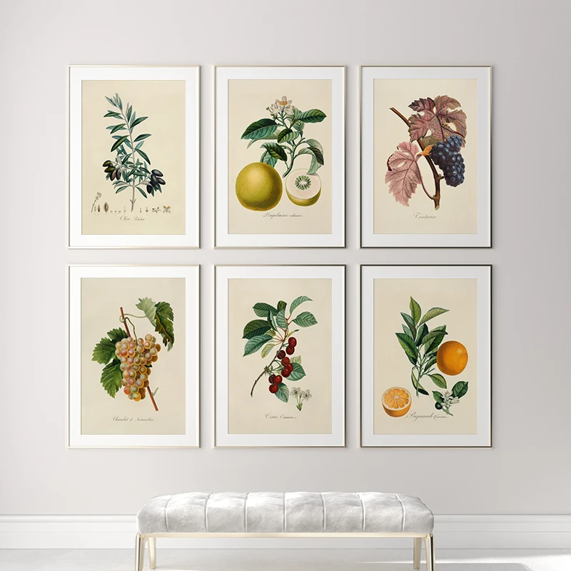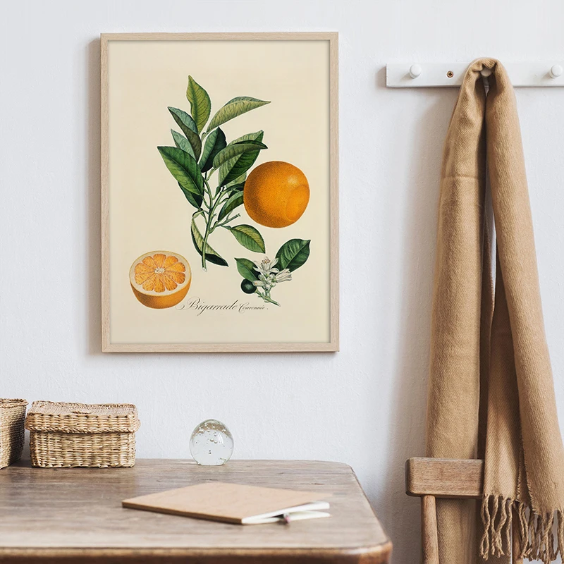 Винтажная картина плакат с изображением фруктов с изображением оранжевых вишен, ботанический холст, картина под старину, настенный кухонный арт, декор для гостиной
