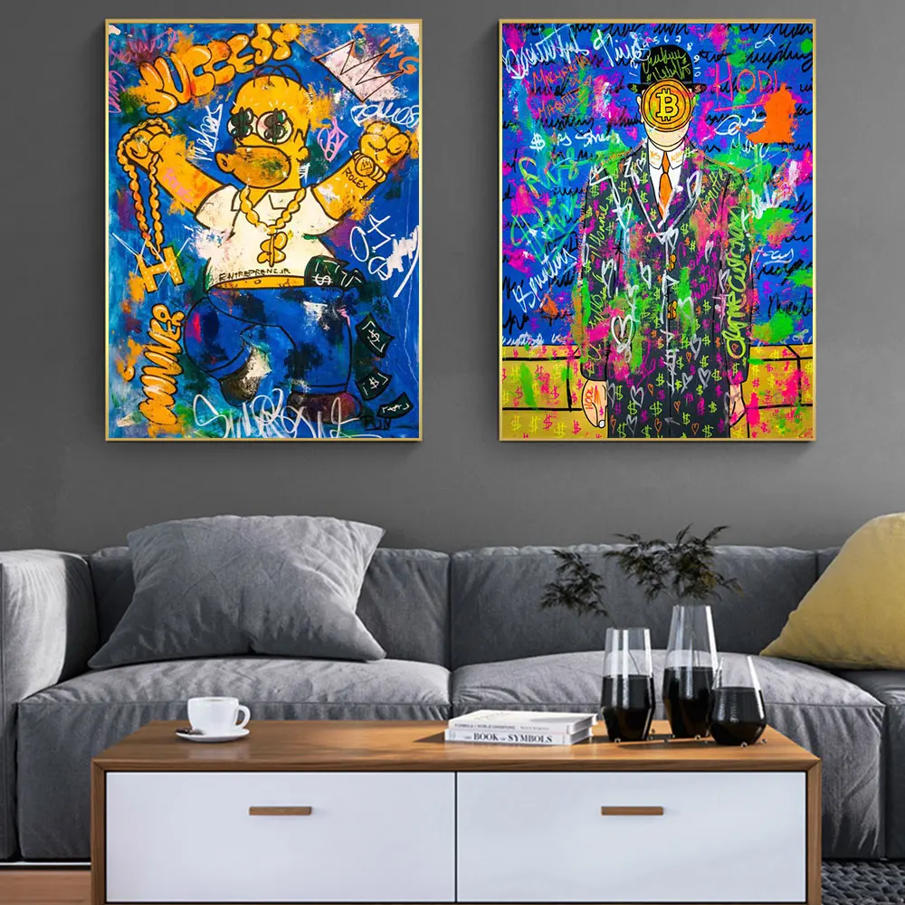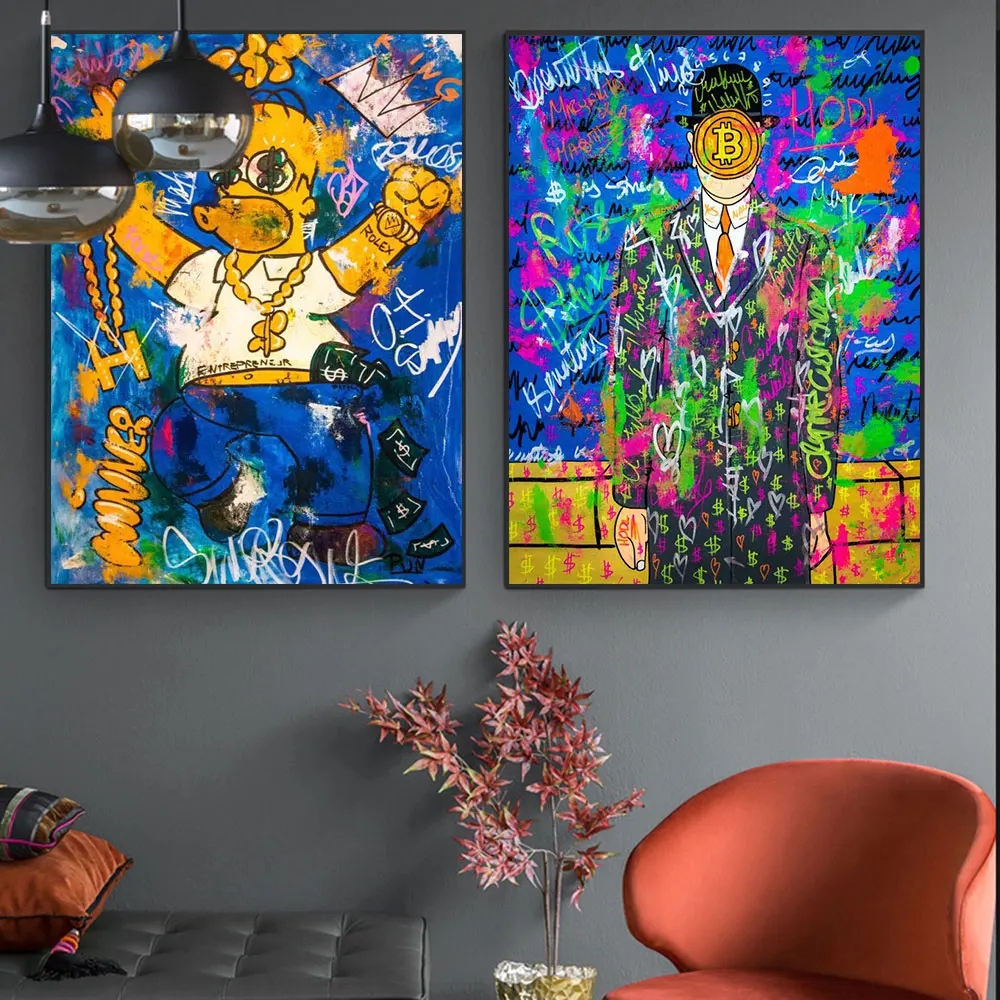 Уличные граффити Биткоин человек постеры абстрактные настенные картины деньги домашний принт известная картина на холсте для гостиной спальни Декор