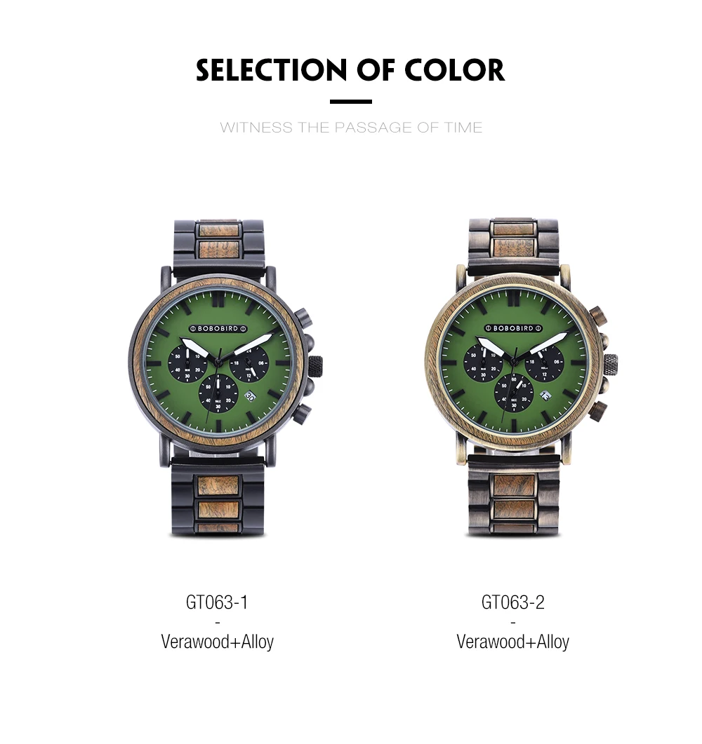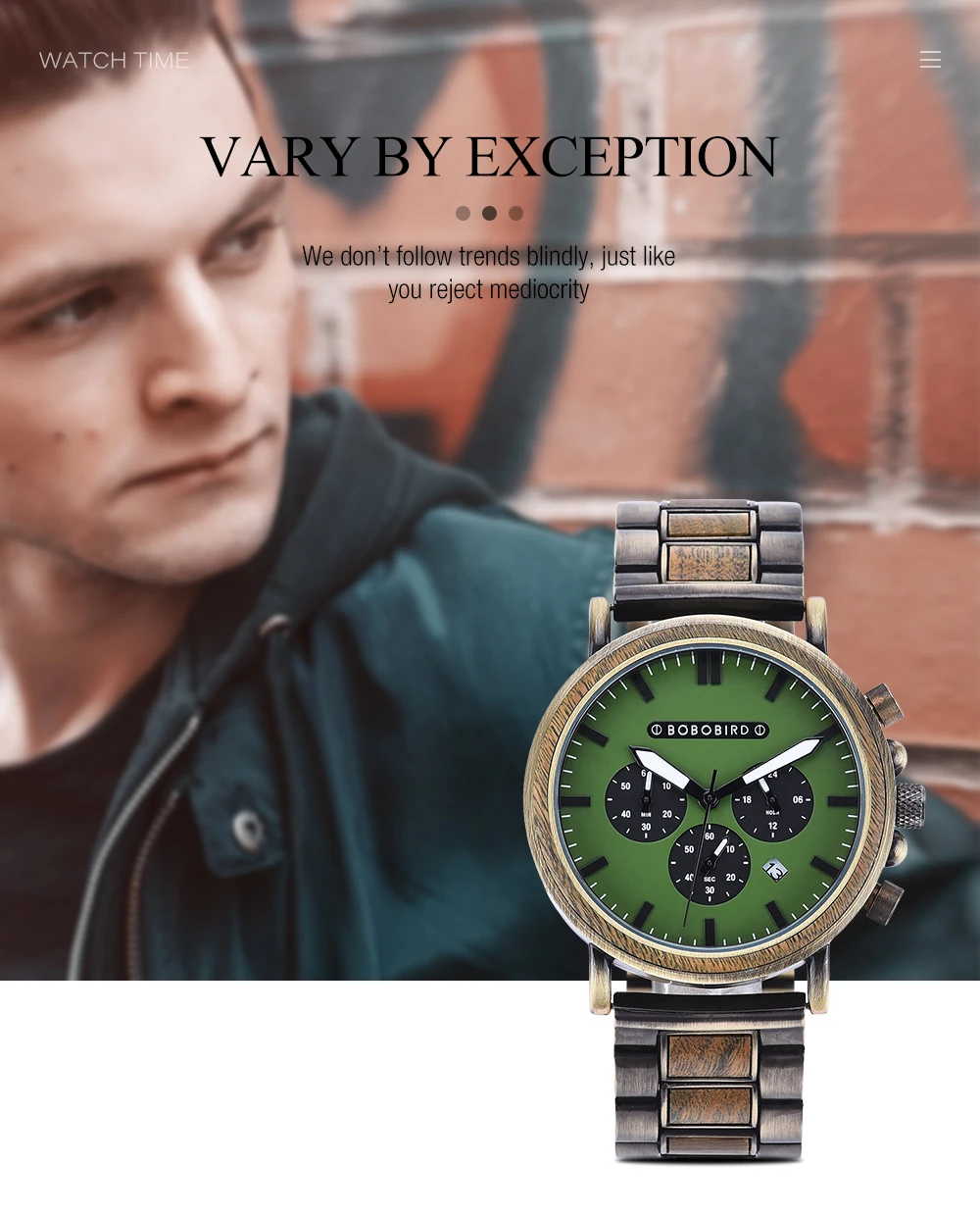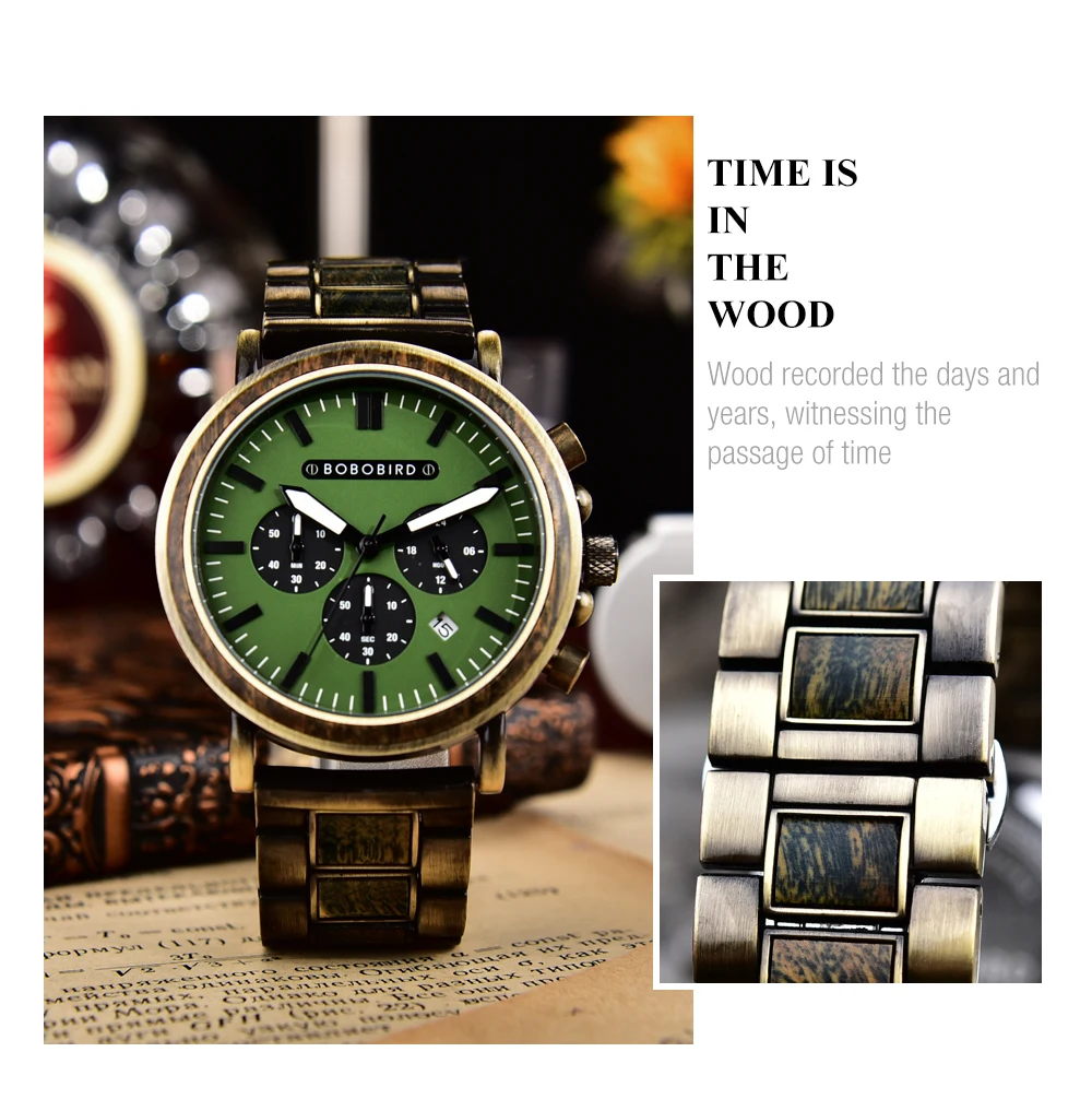 BOBO BIRD часы-браслет из Для мужчин часы Relogio Masculino Лидирующий бренд роскошные стильные с хронографом армейские зеленые часы в деревянной подарочной коробке