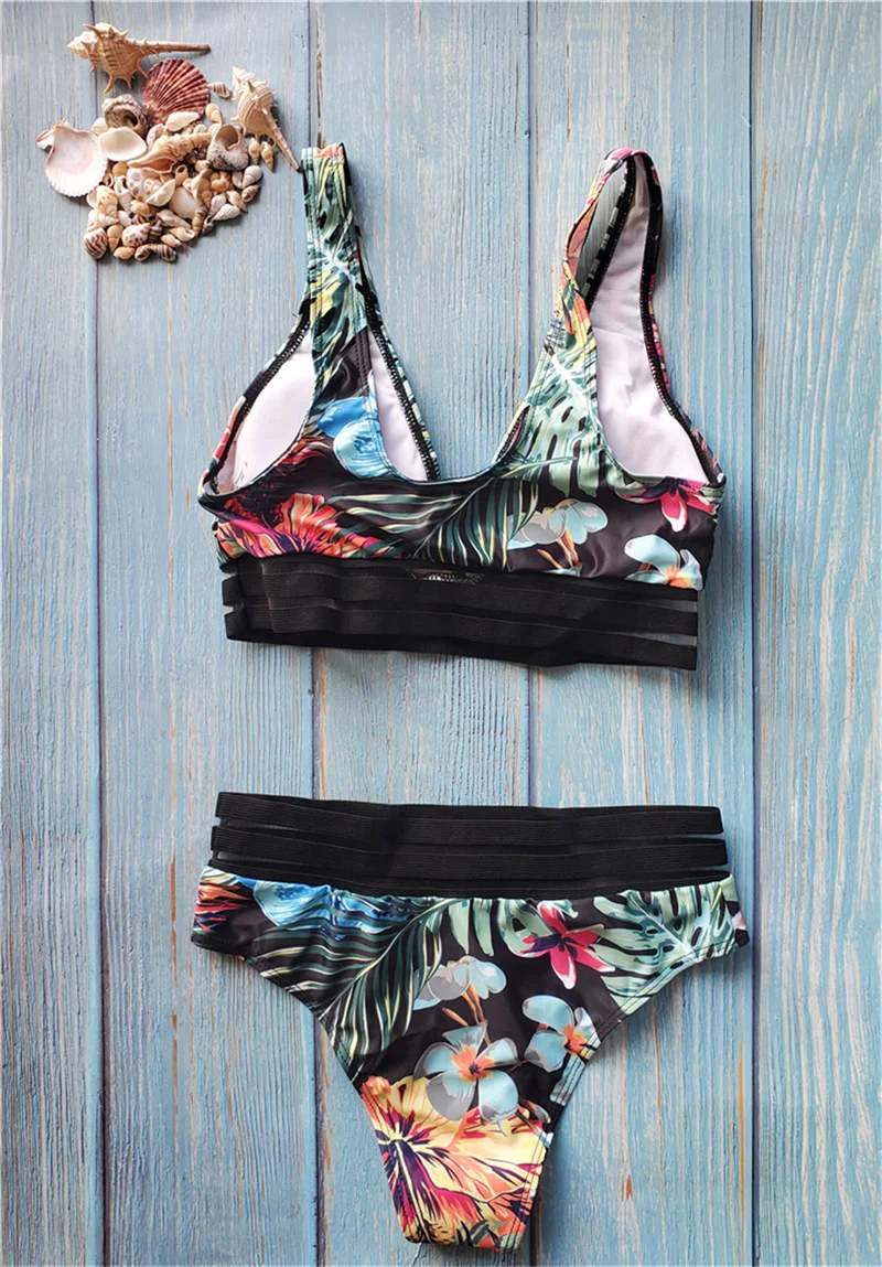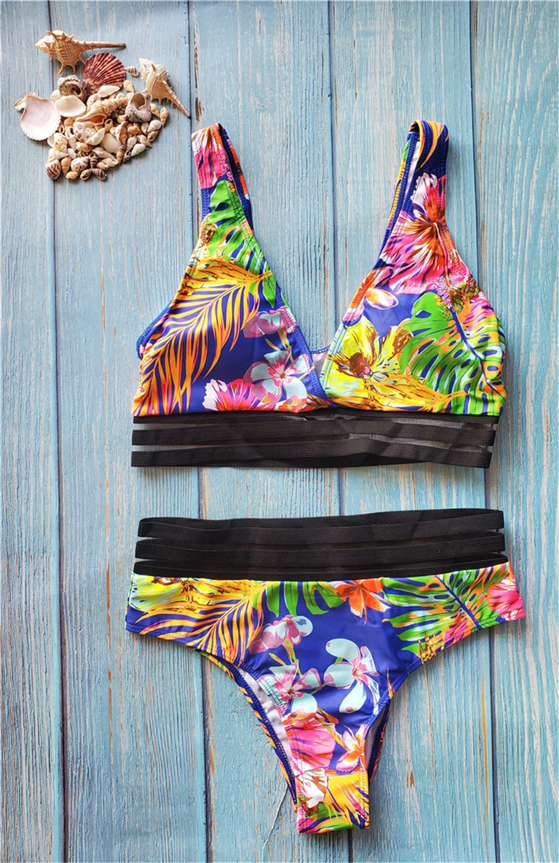 Комплект бикини с высокой талией, женский купальник 2022 с цветочным принтом, сетчатый купальник из двух предметов, Женский Бразильский купальный костюм, новинка