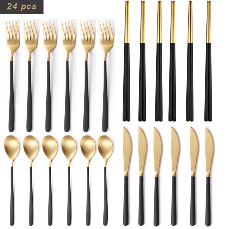 Набор столовых приборов JueQi из нержавеющей стали с покрытием золо...