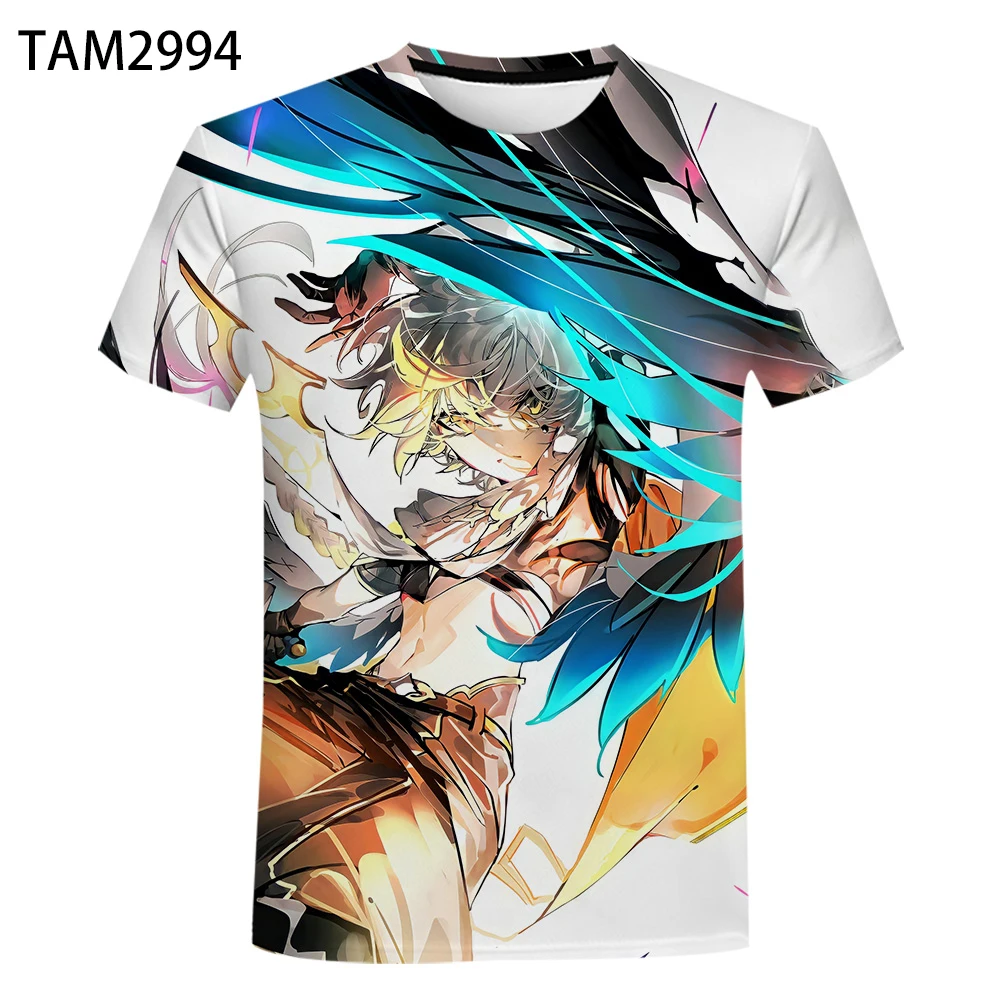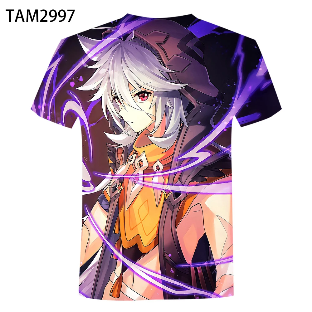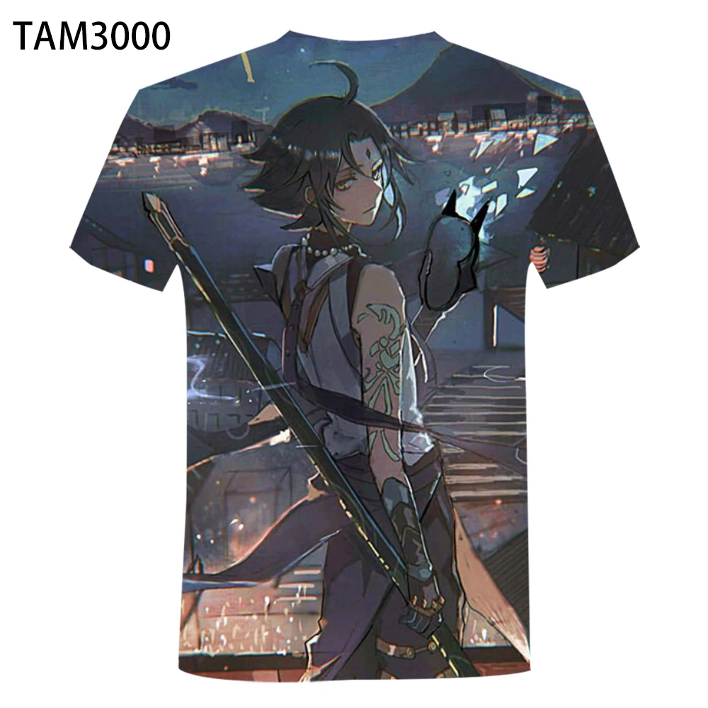 2021 модная футболка с японским аниме Genshin Impact 3d, повседневн...