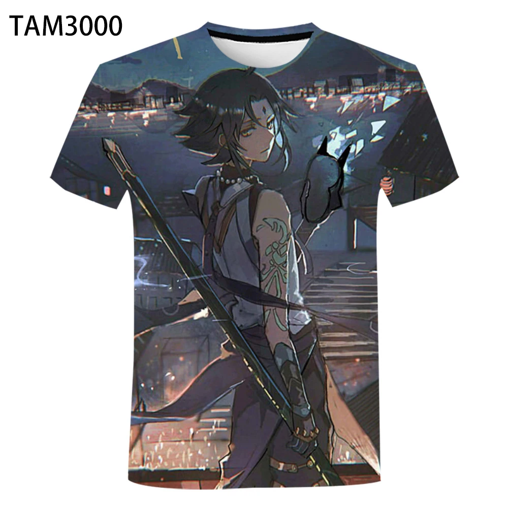 Модная футболка с 3d эффектом японского аниме Genshin, повседневный детский летний уличный топ с коротким рукавом для мужчин и женщин