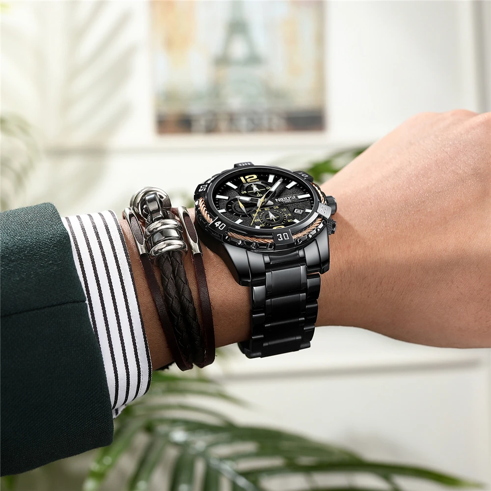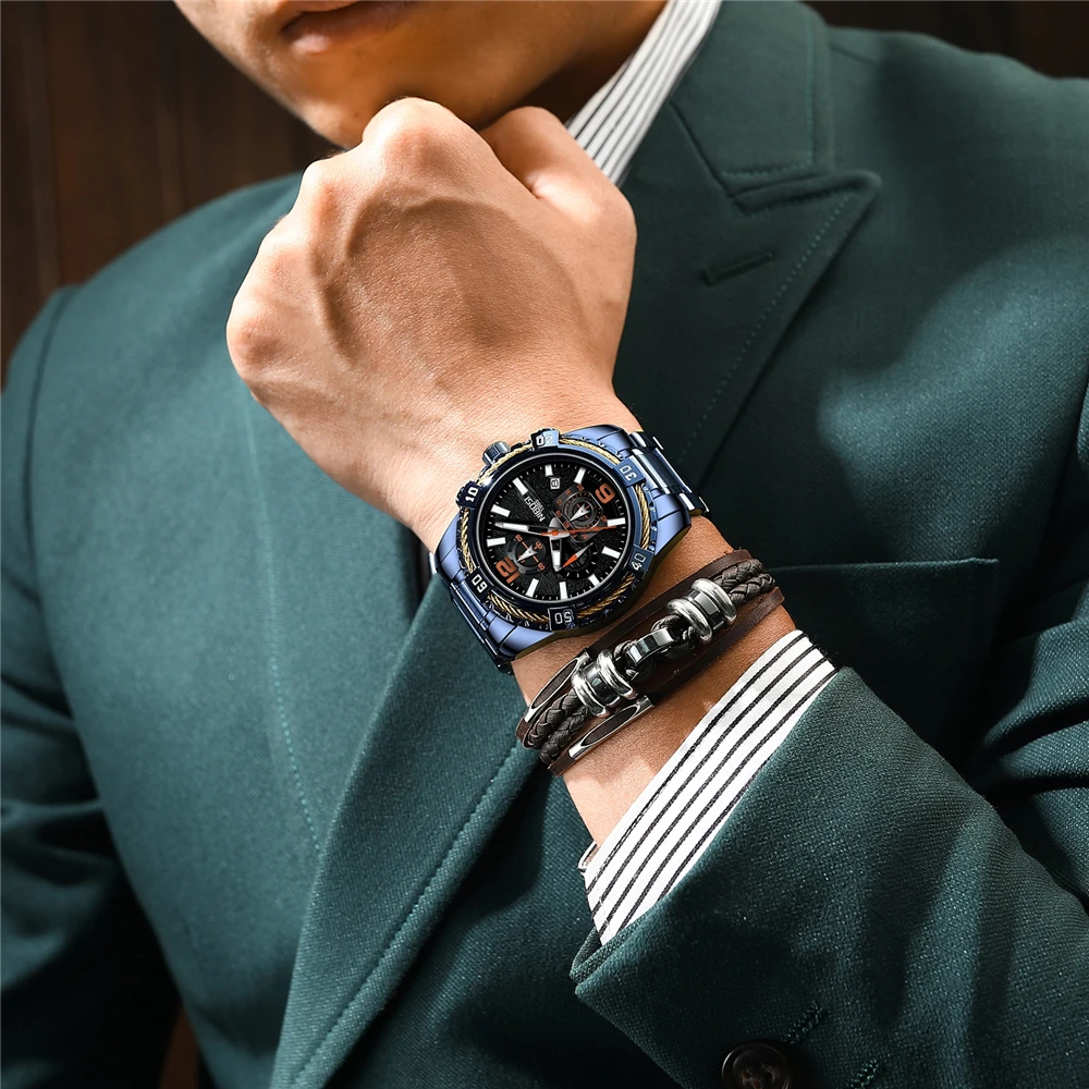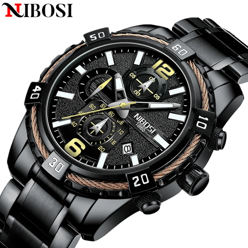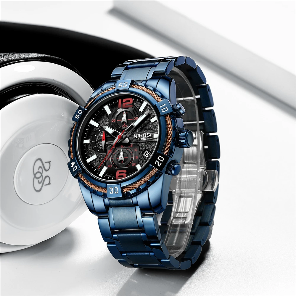 Мужские кварцевые часы-хронограф NIBOSI с ремешком из нержавеющей с...