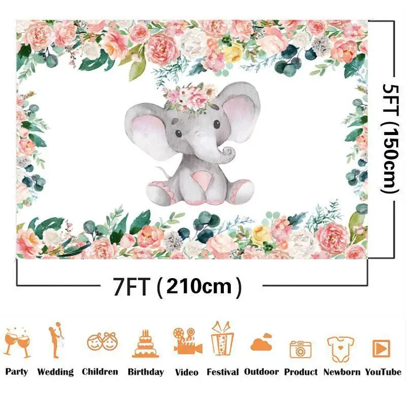 Милый маленький слон Фотофон с цветами платье для девочек на день рождения вечерние картина Фотофон для студии с рождественским снегом номер Украшение Стола
