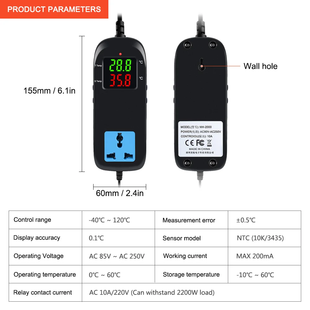 Цифровой регулятор температуры MH2000, высокоточная электронная розетка, нагревательный охлаждающий инструмент для домашнего холодного хранения и лаборатории