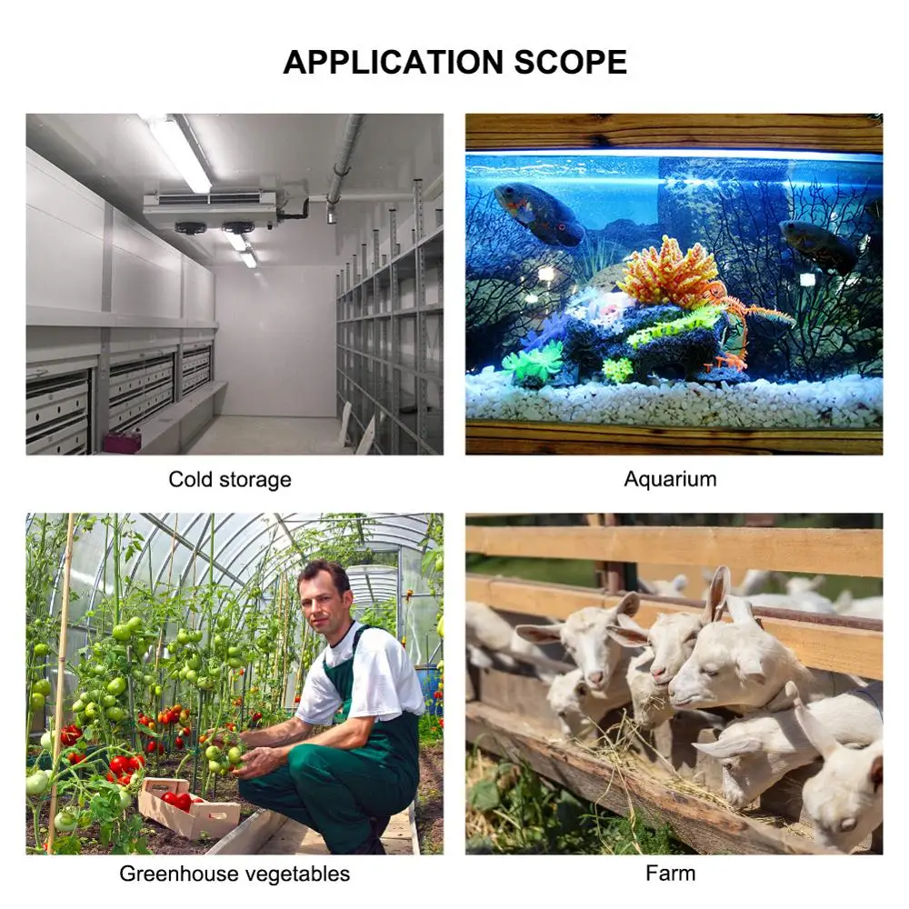 Этот профессиональный регулятор температуры используется для теплиц для овощей, бытовых резервуаров для воды, холодильников, промышленных охладителей, больниц, аквариумов, аквакультур и других систем с контролем температуры.