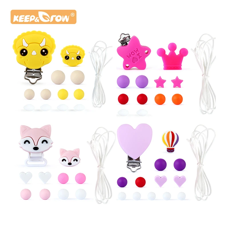 Fox силиконовый банные халаты в виде животных для маленьких силиконовые соски с цепочкой для младенцев Прорезыватель для зубов клип бусины комплект ювелирных изделий DIY для прорезывания зубов ребенкаожерелья игрушки из мультфильмов соски с цепочкой, ProductsPacifier цепи питания Класс бусины клипса для кулон для новорожденных прорезывания зубов игрушки оральный уход, прорезыватель