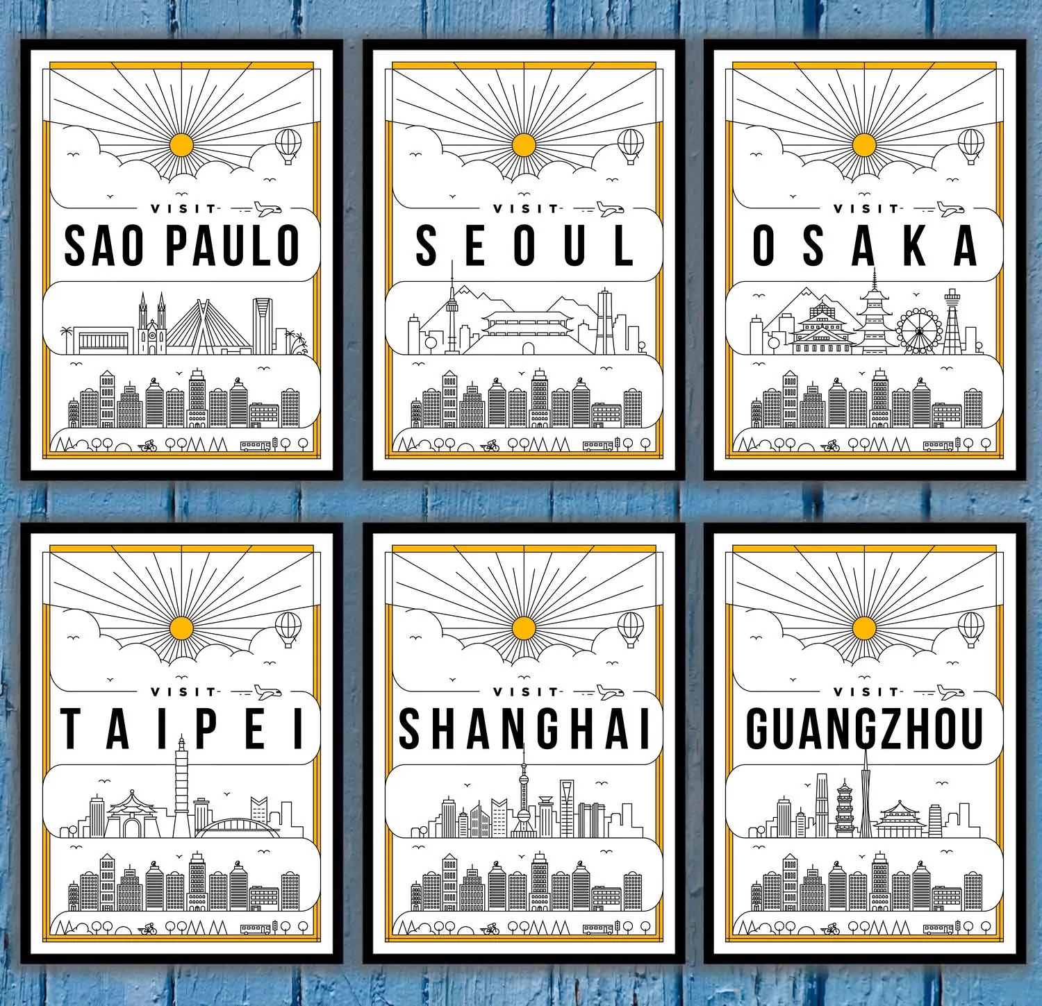 Сан-Паулу, Сеул, Осака, Тайбэй, Шанхай, Гуанчжоу, Торонто, Барселона, Милано, Рим, Прага, постер для путешествий, Картина на холсте