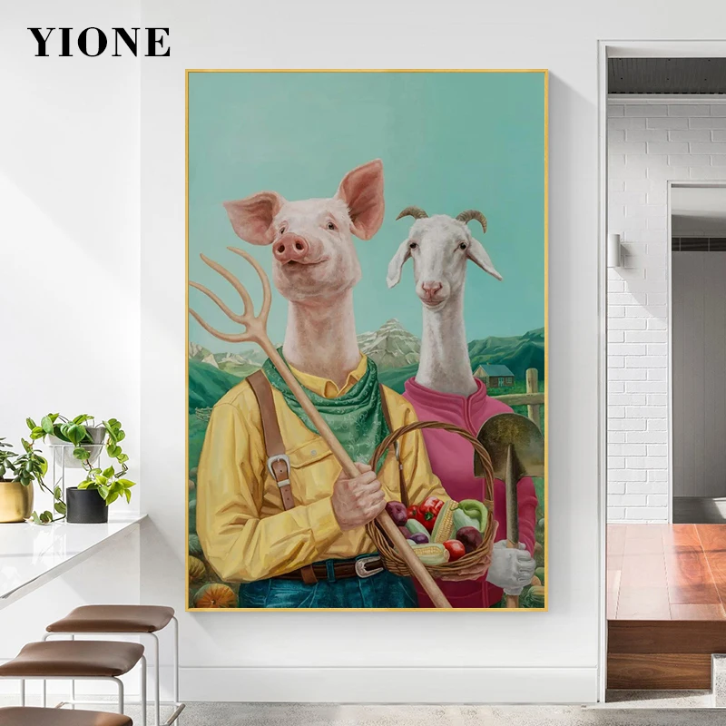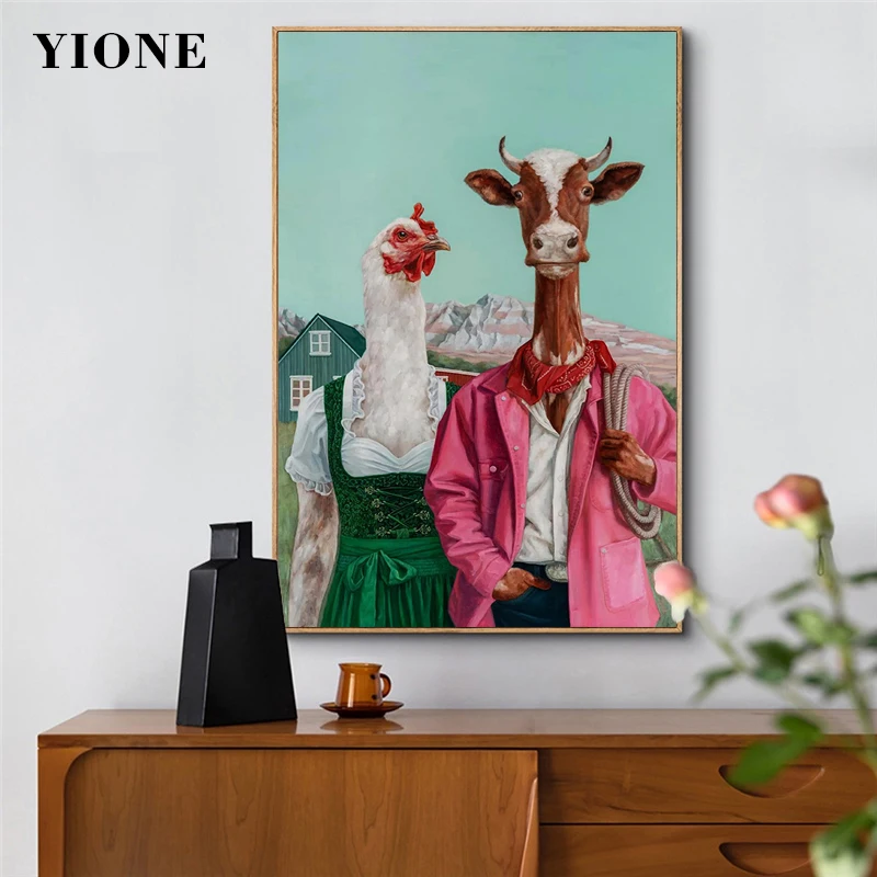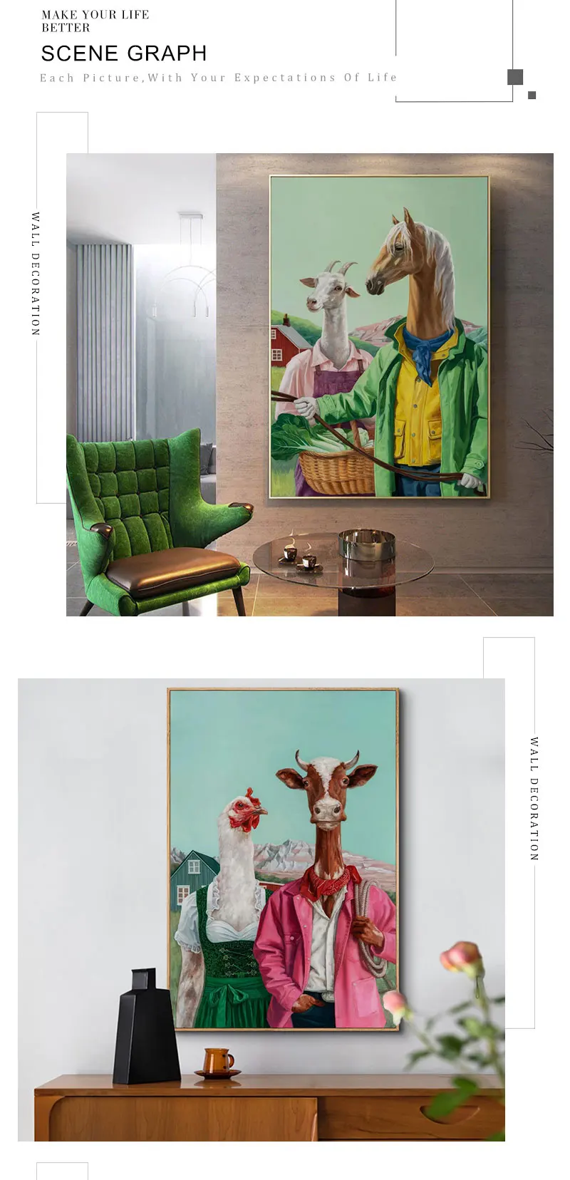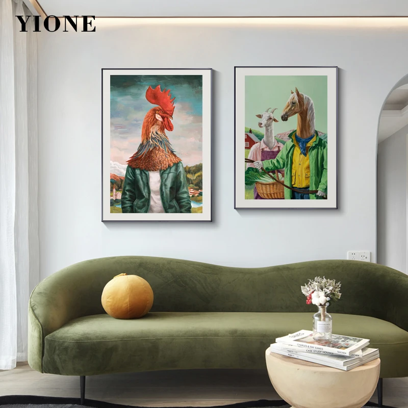 Винтажные картины на холсте с изображением животных, джентльмена, а...