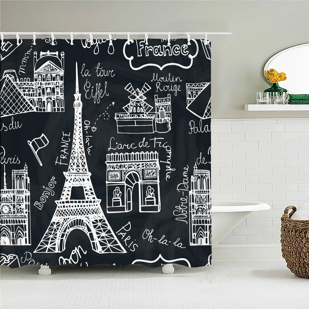 Занавеска для ванной в винтажном стиле, тканевая Водонепроницаемая штора в стиле ретро, s-образный экран для ванной, домашний декор