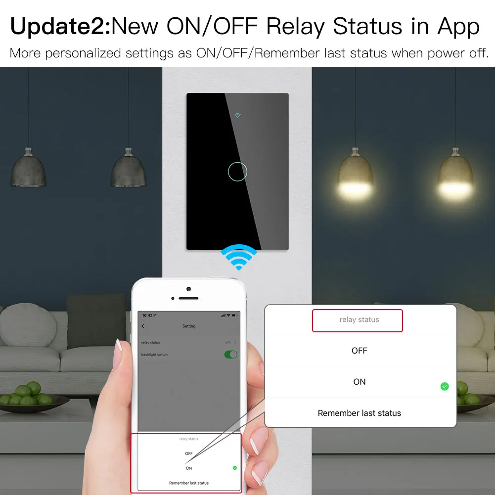 3. Вновь Вставьте новые функции в обновленное приложение Smart Life Tuya, например статус реле Вкл/Выкл, как запоминается в последнем состоянии при выключении питания и настройке переключателя подсветки. Совместимость с Alexa и Google home позволяет свободно управлять подключенными устройствами с помощью голосовых команд; Удаленное управление устройствами на вашем смартфоне через приложение smart Life/Tuya, где бы вы ни находились.