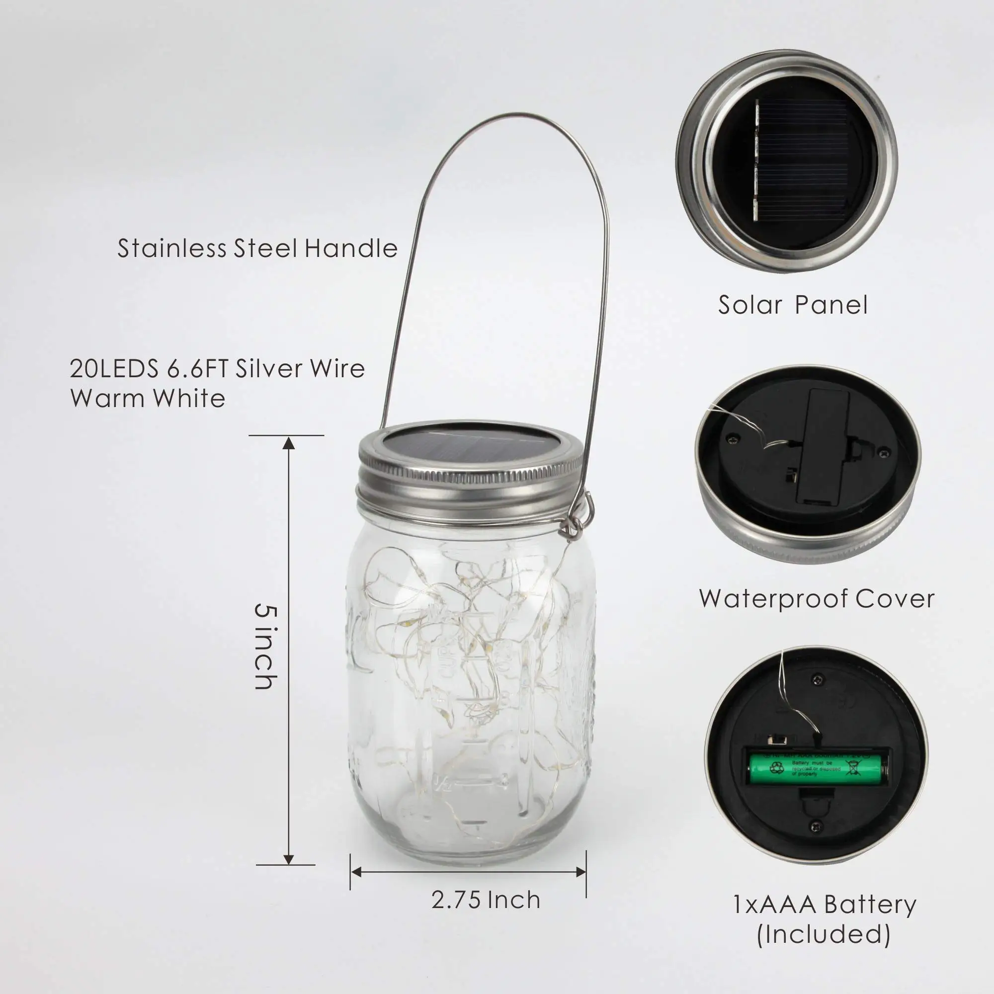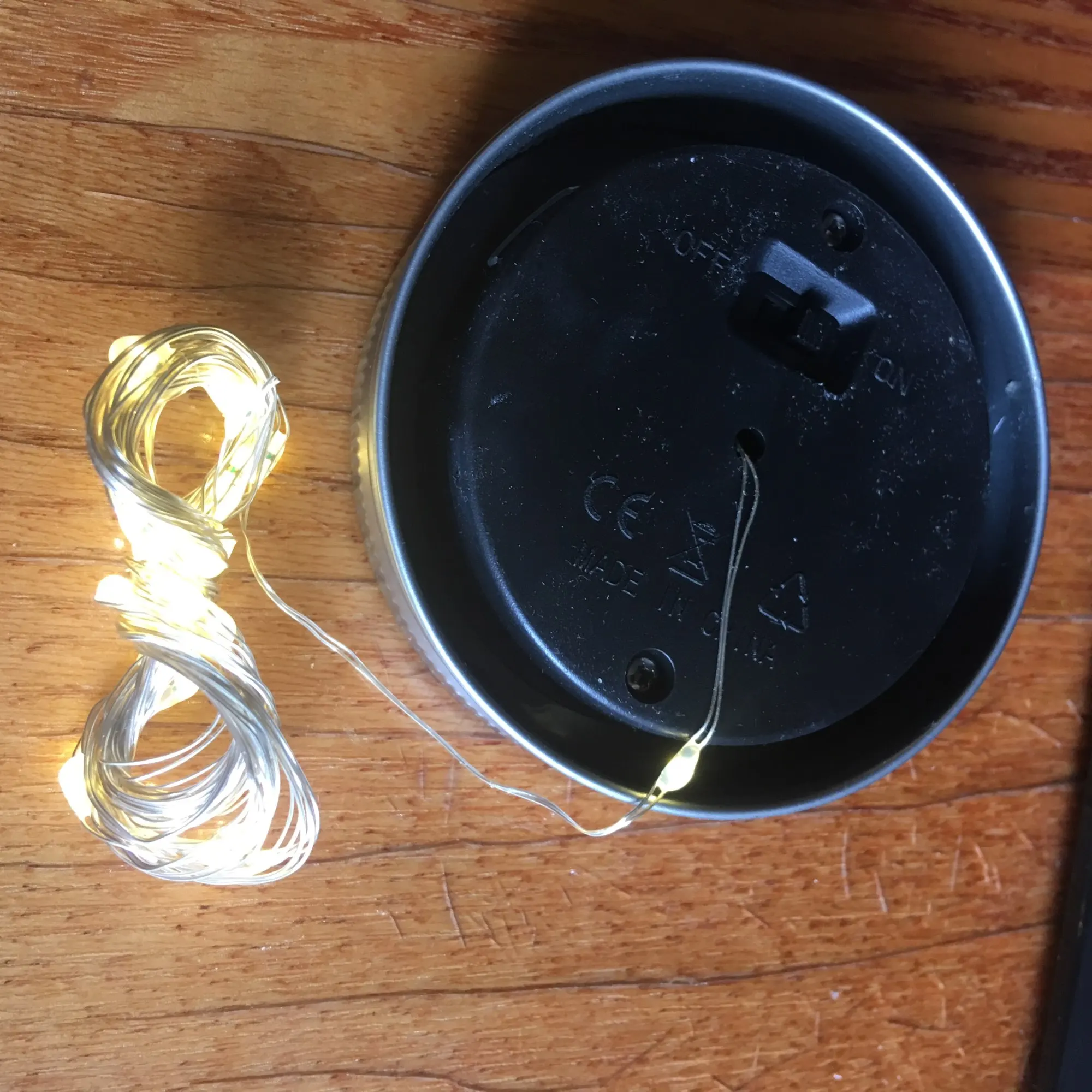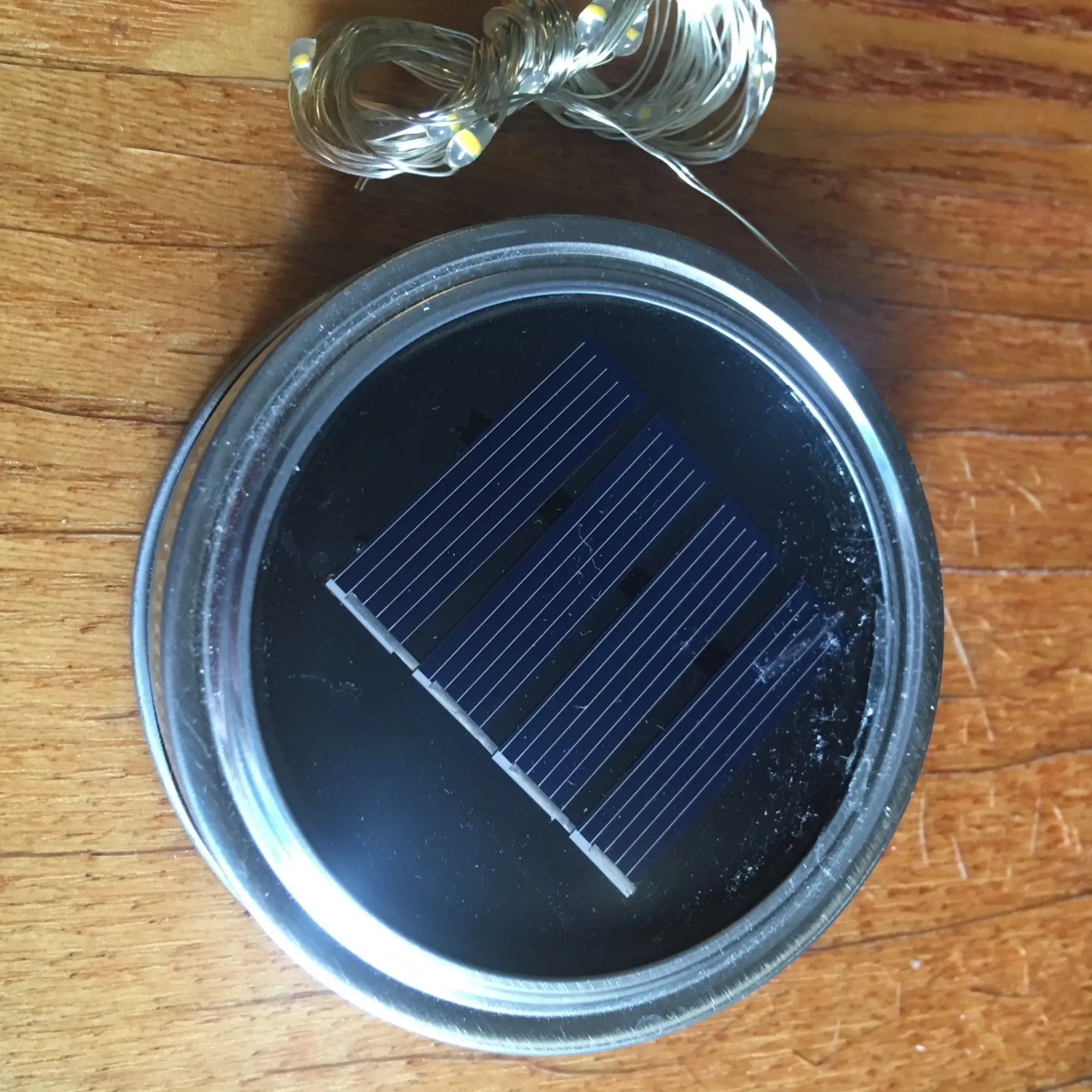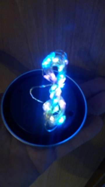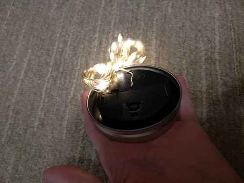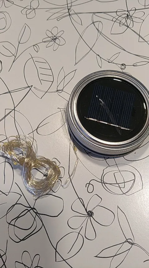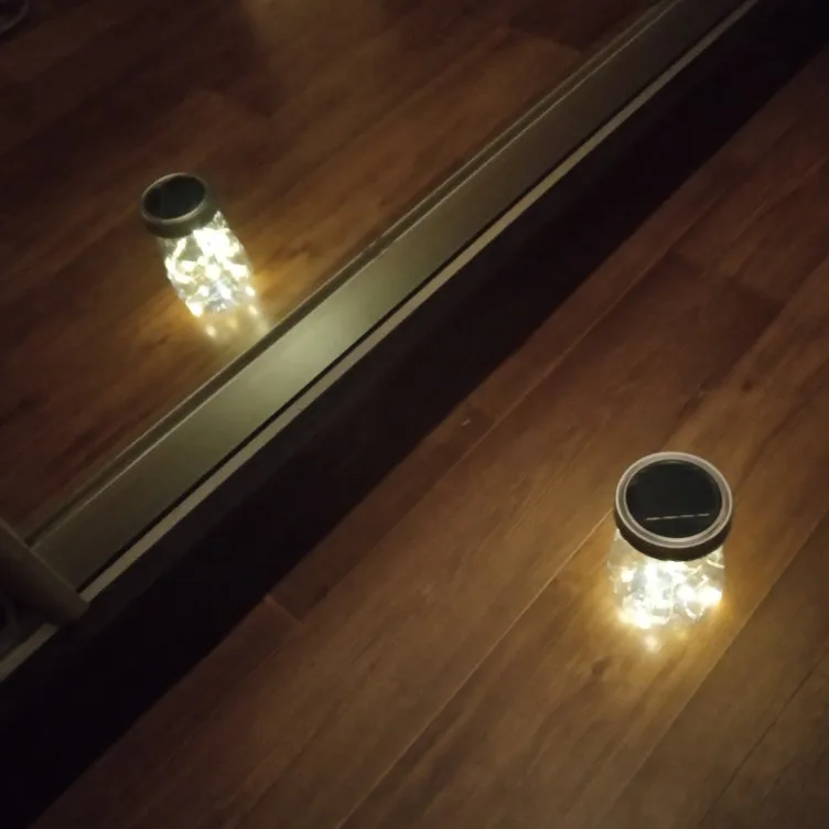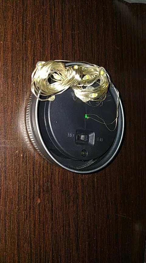 Большое спасибо продавцу. Классная гирлянда крышка. Заряжается солнечной батареей, есть датчик работает только когда темновато. Смотрится волшебно. Банки подходящей не нашла, на кружку подошло, но держится не плотно)