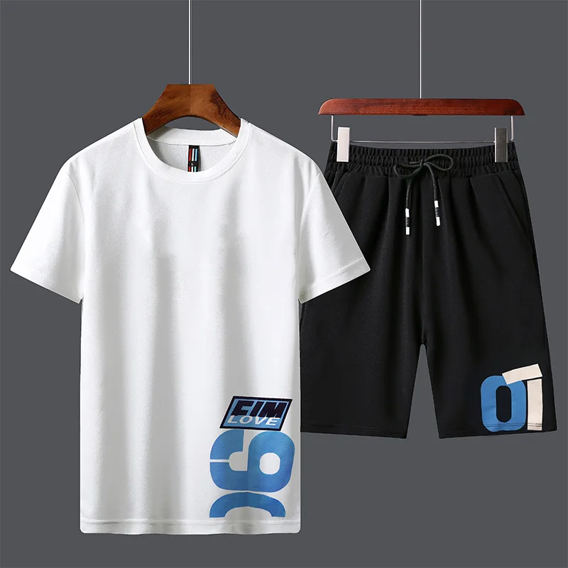 Мужские комплекты, спортивная летняя одежда с принтом, футболка с коротким рукавом и шорты, костюм, произвольный матч, новинка 2021, шикарный комплект из двух предметов для мужчин